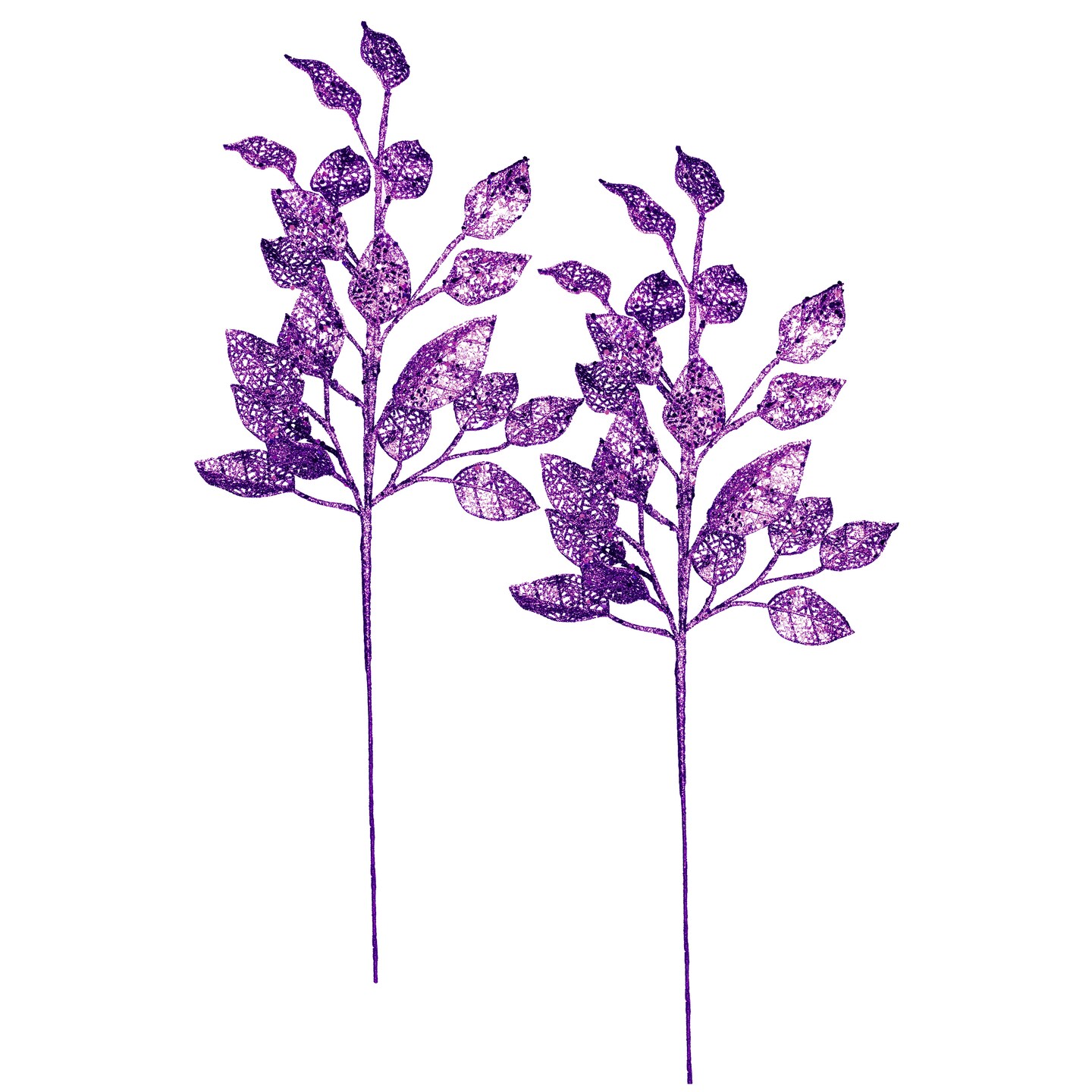 2 Pack of 24" Purple Leaf Picks with Glitter Enhancements