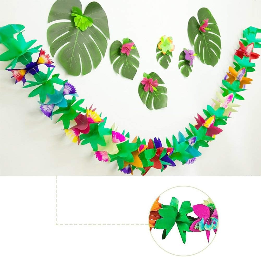 2 Pack Summer Tropical Garland Party Decorations, 20ft Multicolored Tissue Paper Hibiscus Flower Summer Banner for Birthday Beach Theme Luau Moana Hawaiian Party Supplies