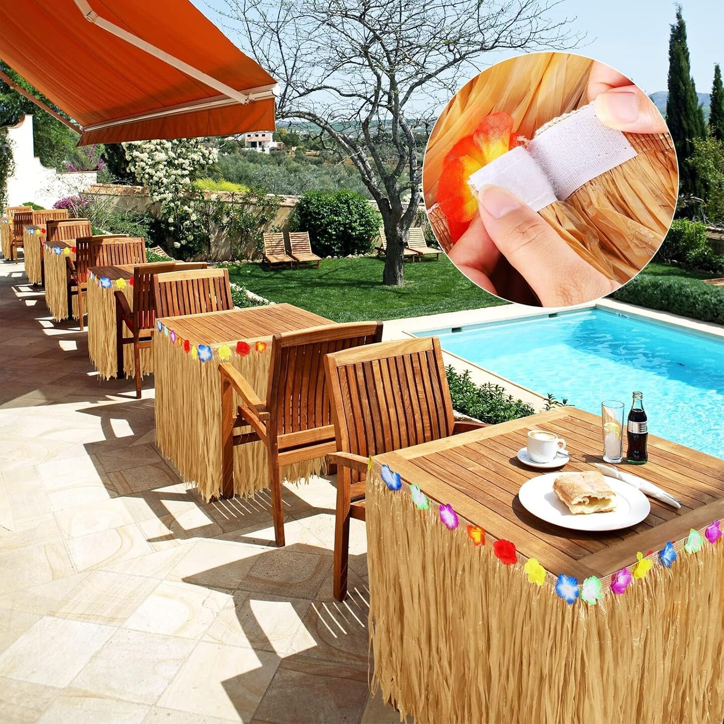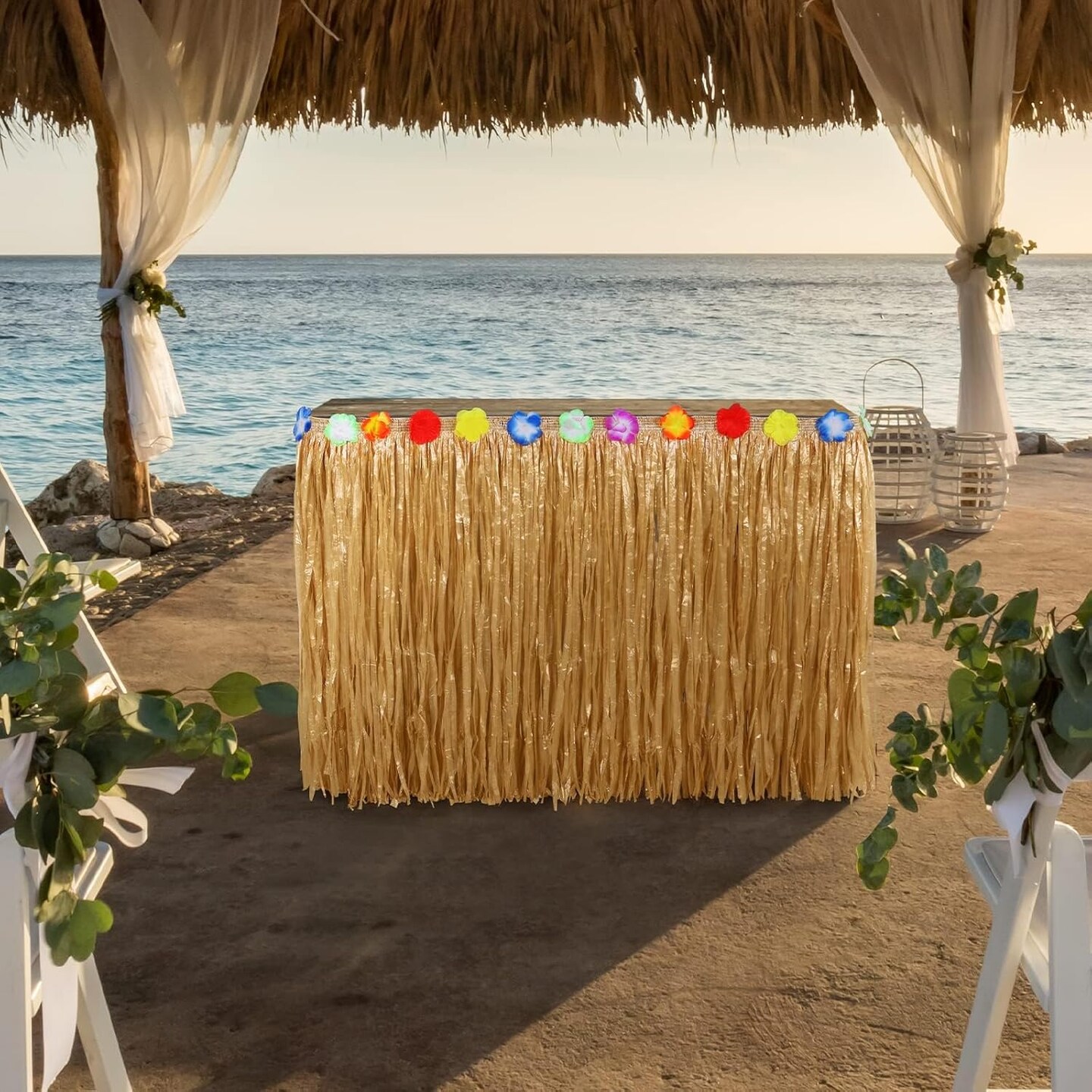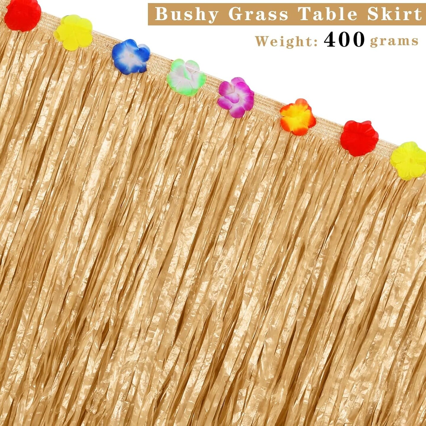 2 Pack Thickened Grass Table Skirt Natural with Hibiscus Flowers 400g