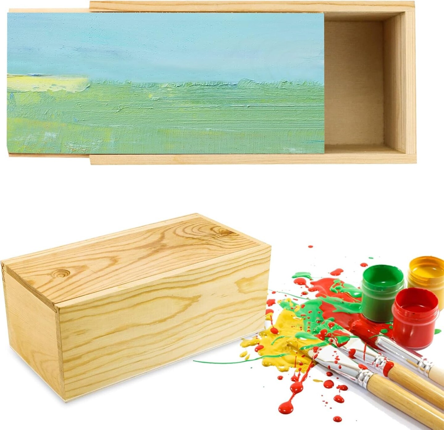 2 Pack Unfinished Wood Storage Box with Slide Lid,