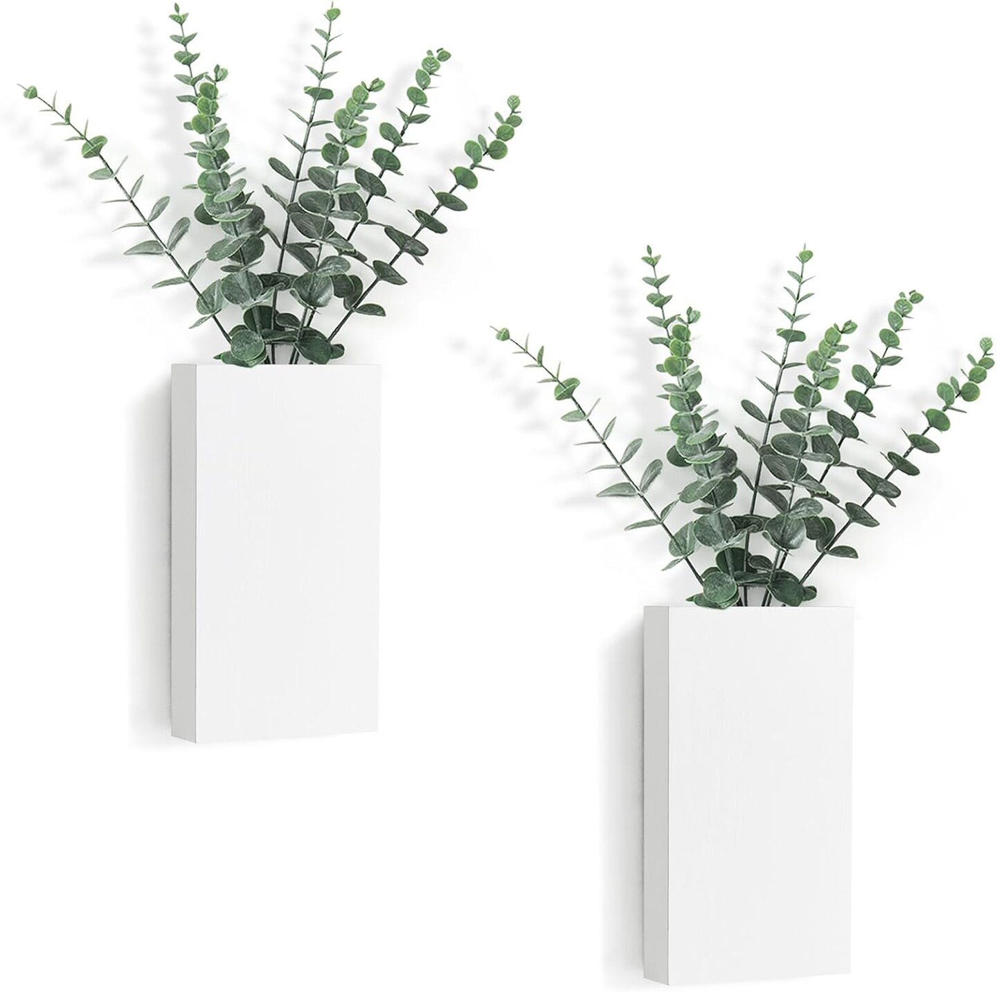 2 Pack Wood Wall Planter Vase with Artificial Eucalyptus Farmhouse Hanging Decor