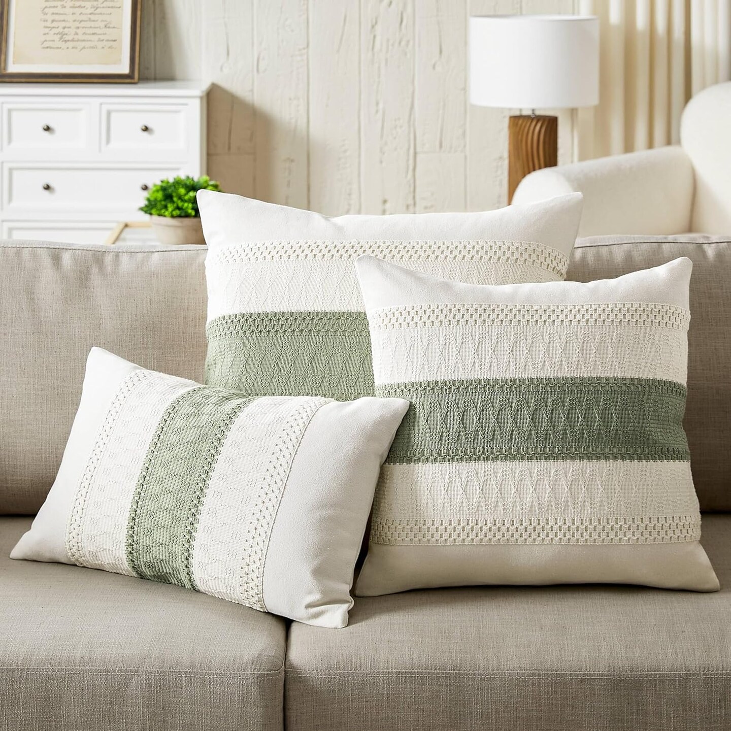 2 Packs Cotton Boho Throw Pillow Covers 18x18 Inch Contrast Green