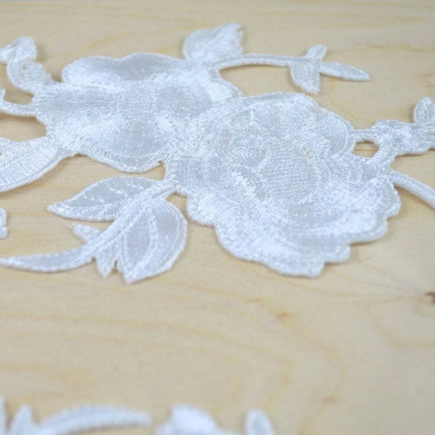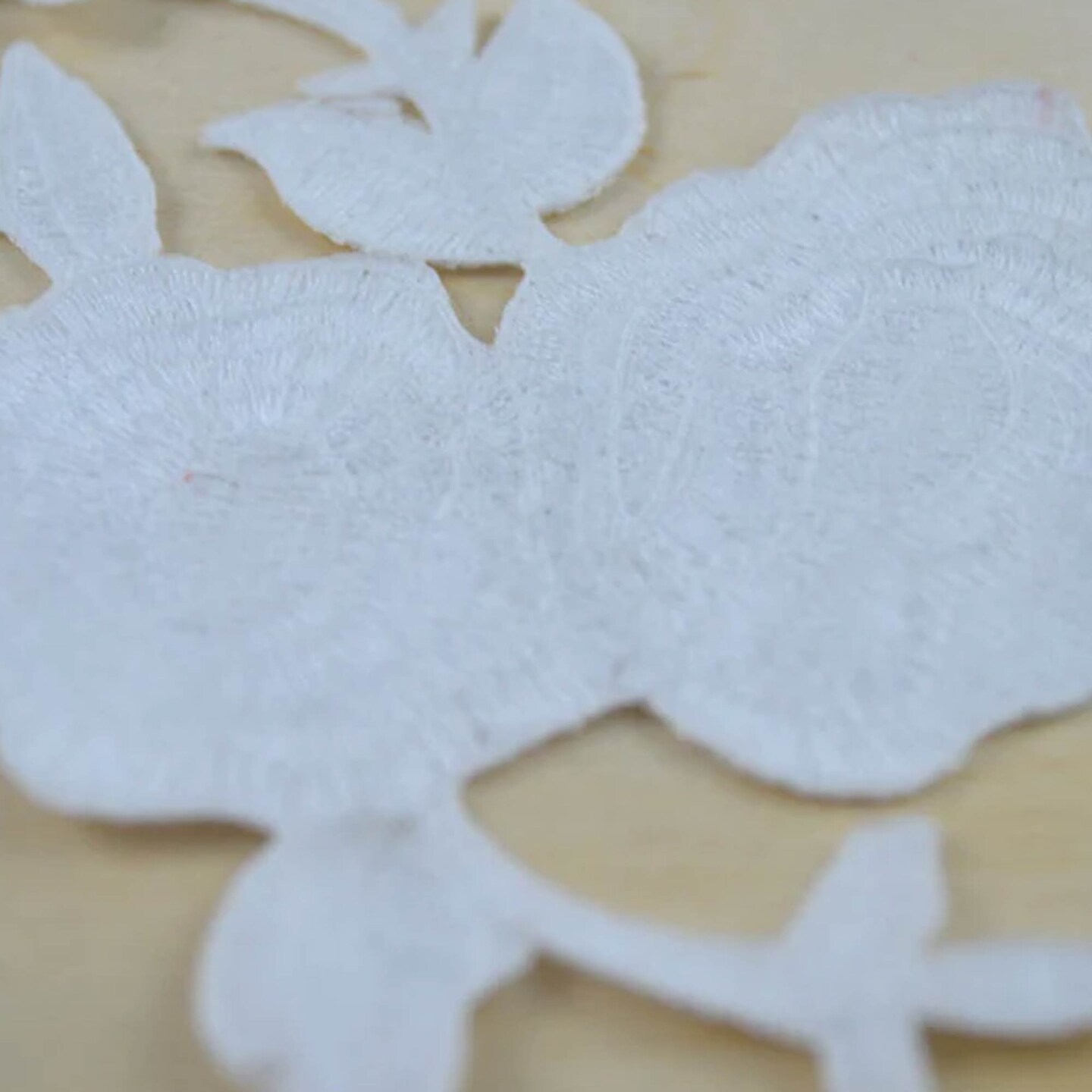 2 Patches White Floral Embroidery Iron On Applique for Dresses Hair Accessories Sewing Crafts