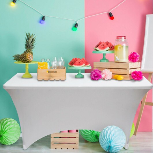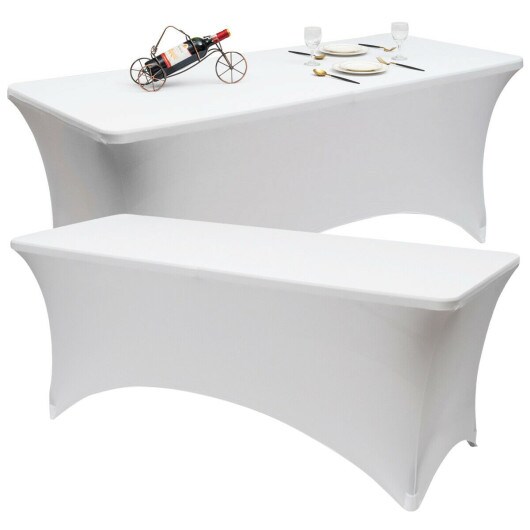 2 Pcs 4 Ft Rectangular Spandex Tablecloth Fitted Wedding-White