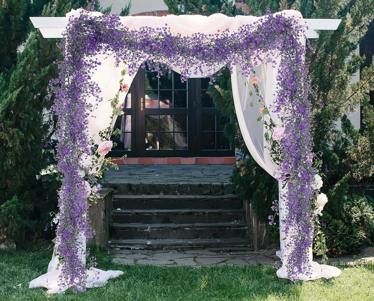 2 Pcs 5.6 Ft Artificial Hanging Garland with Purple Fern & Ivy Leaves