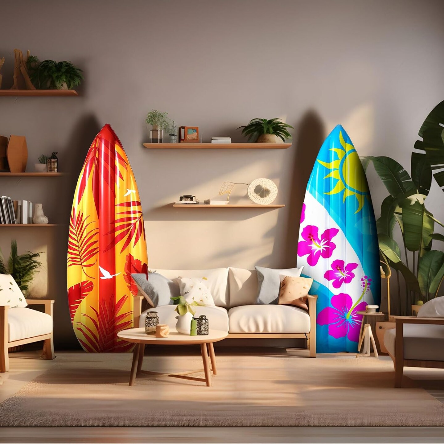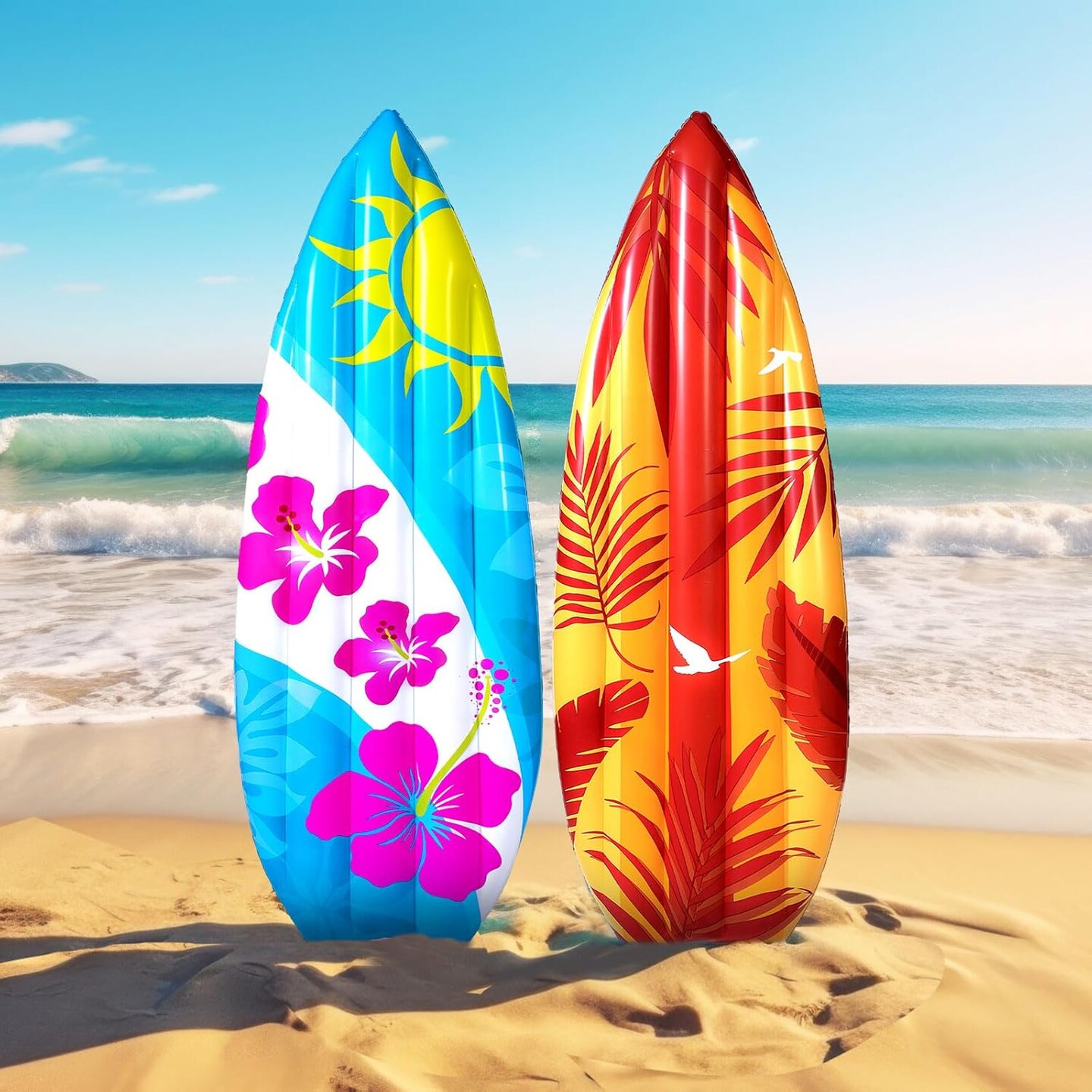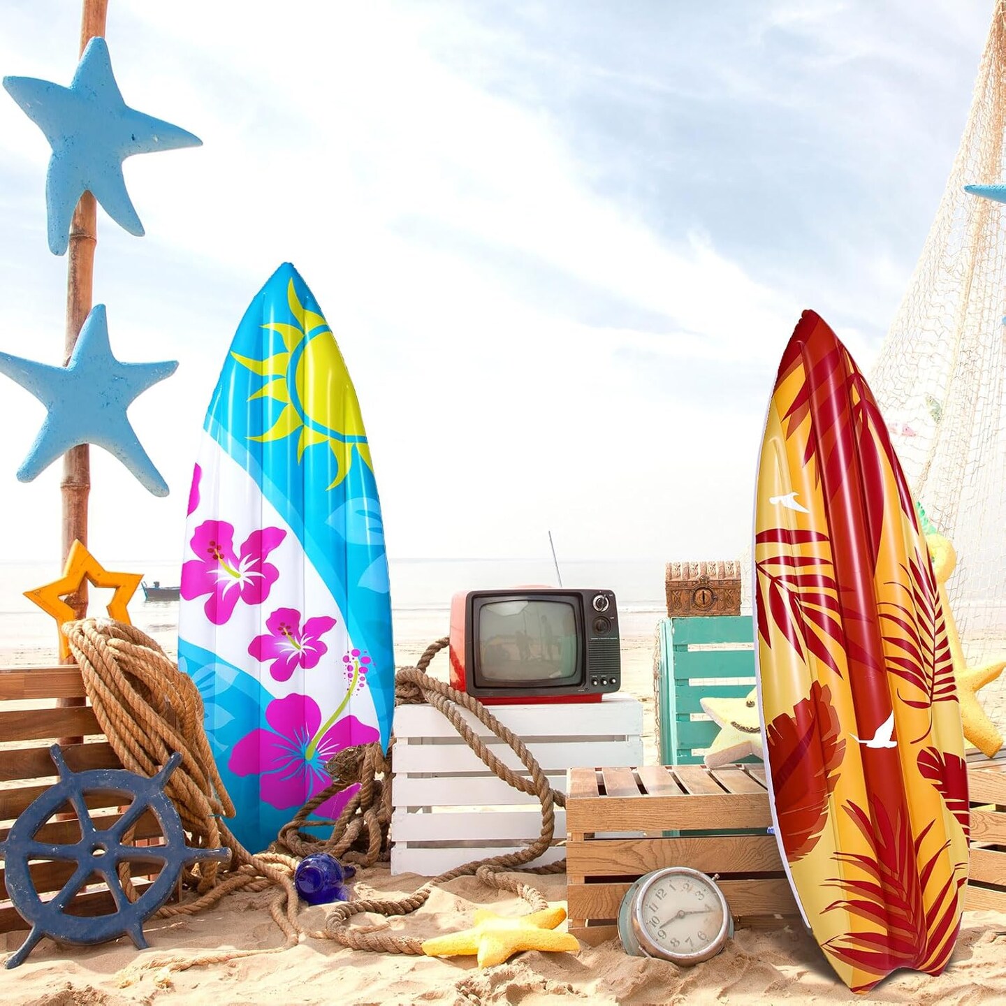 2 Pcs 60" Luau Inflatable Surfboard Hawaiian Theme Beach Pool Float Summer Tropical Blow up Pool Board Blue and Orange Surfboard for Adults Kids Beach Hawaiian Party Decor, 2 Styles