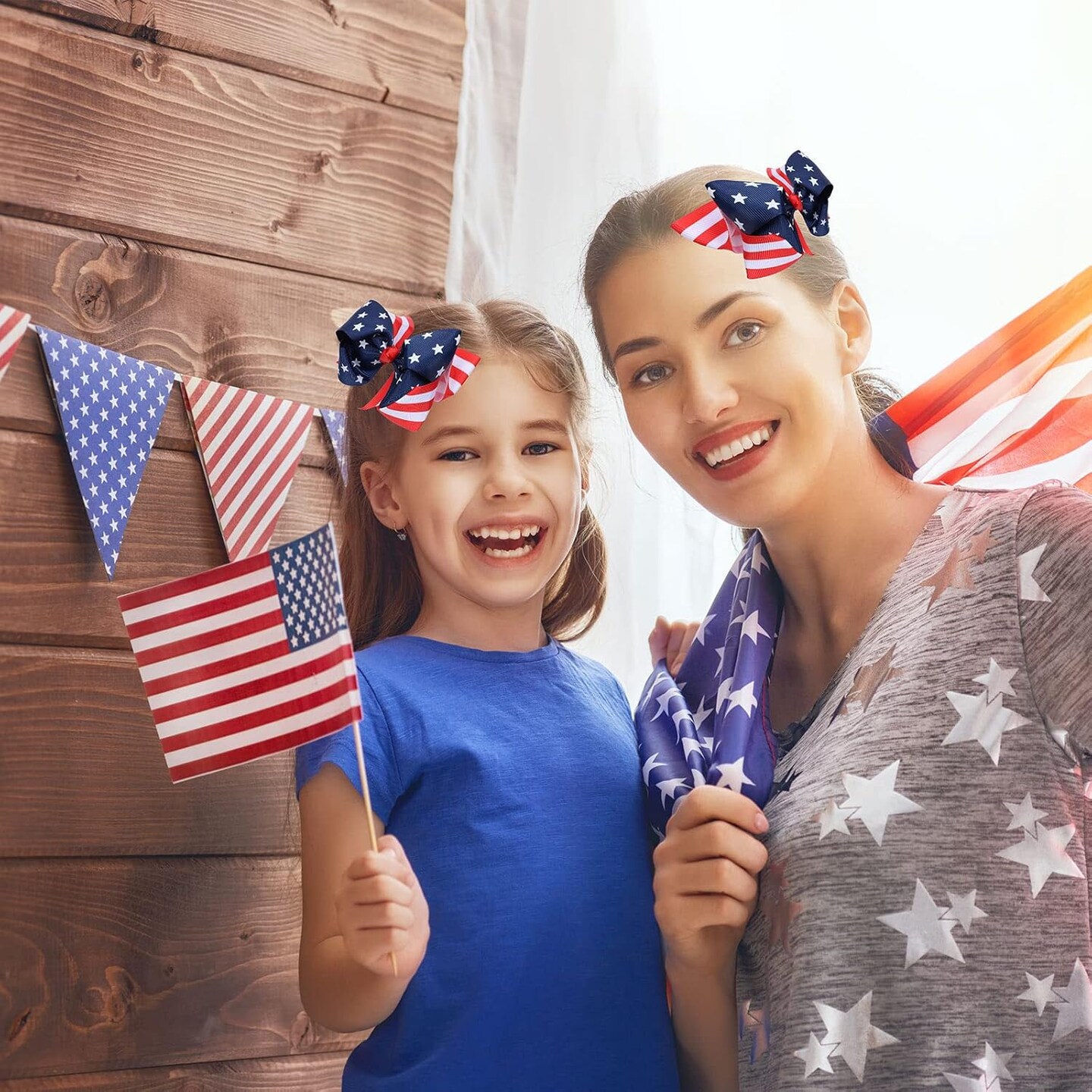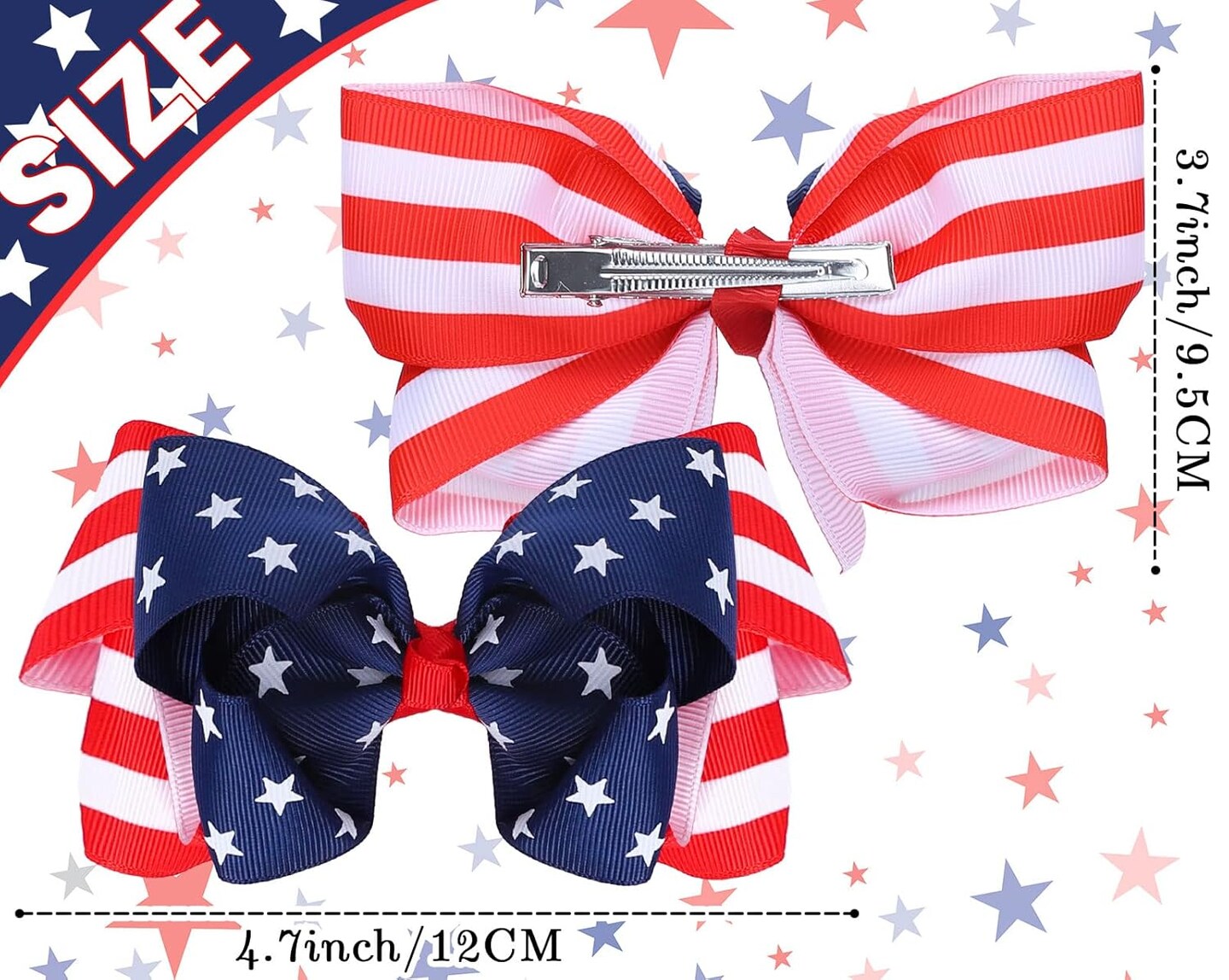 2 Pcs American Flag Hair Bow Clips – Patriotic Stars & Stripes Alligator Hairpins for Baby Girls, Kids & Women, 4th of July & Independence Day Hair Accessories