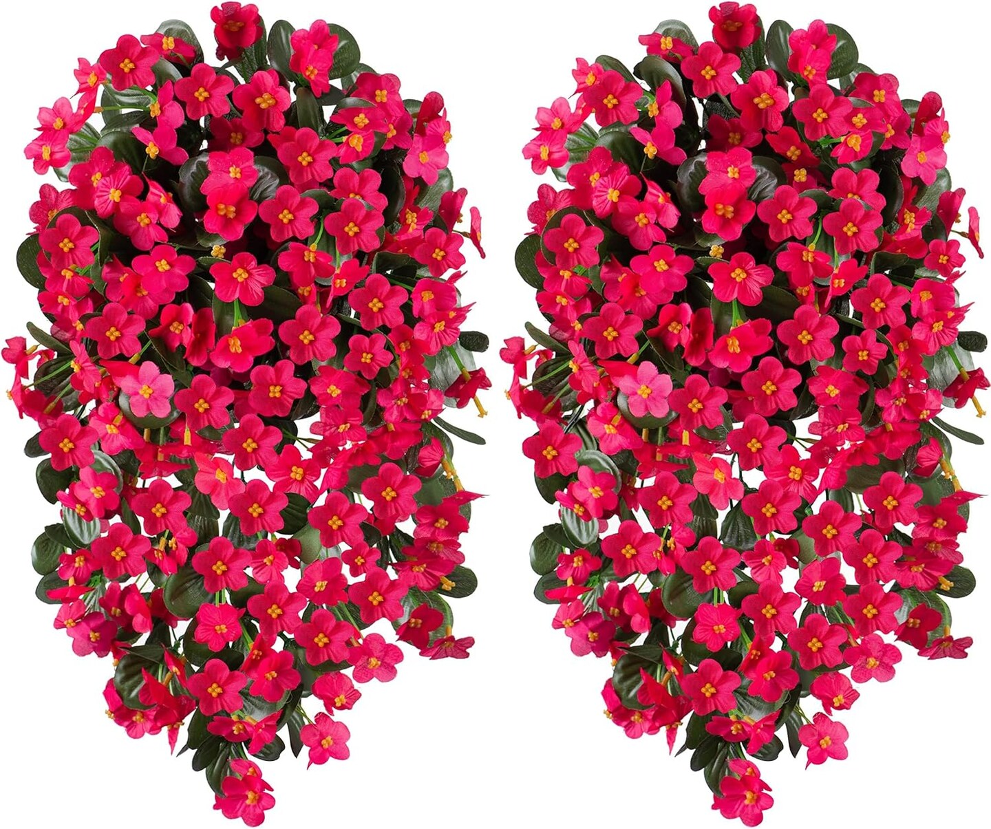 2 PCS Artificial Faux Hanging Plants Flowers for Outdoor Outside Spring Decoration(Hotpink)