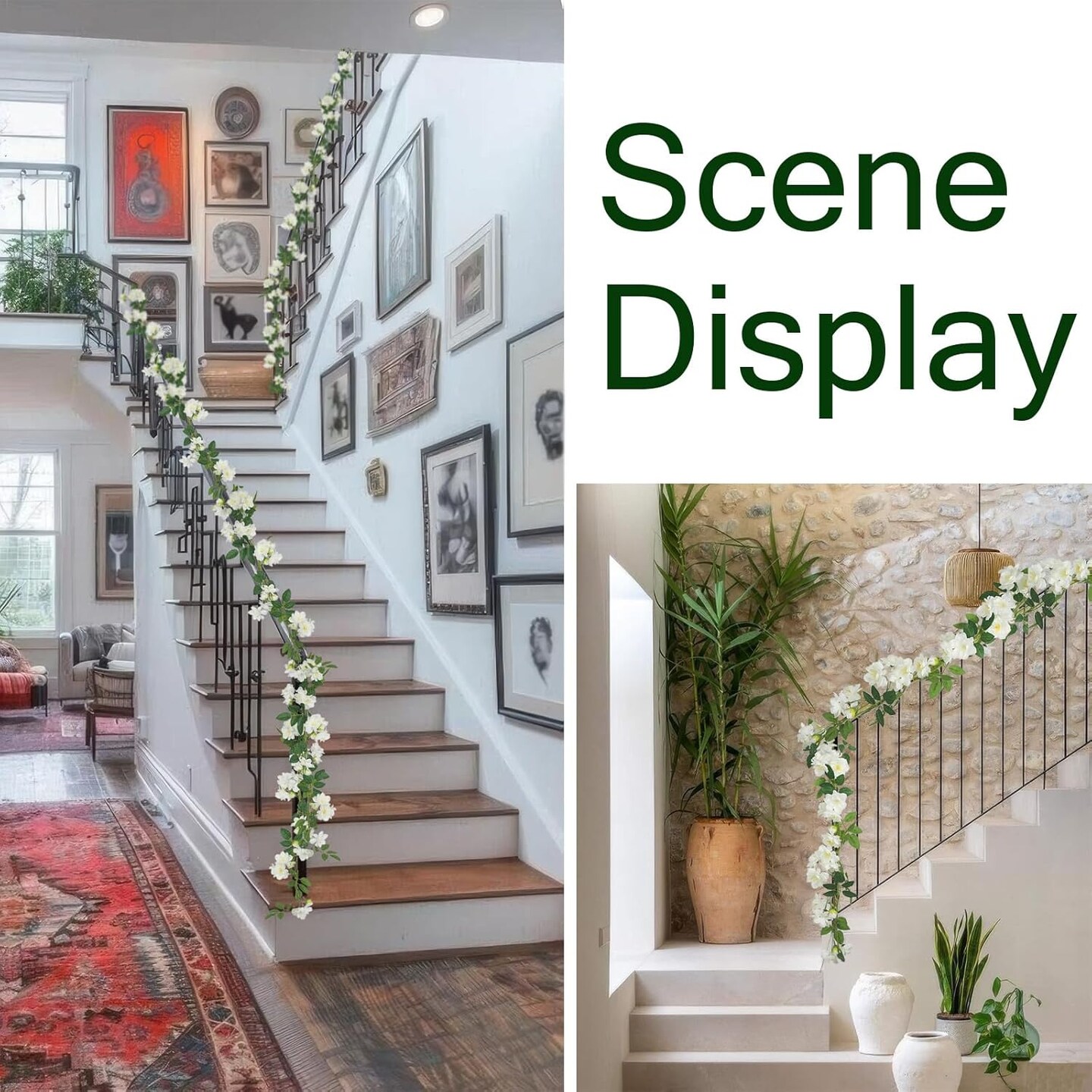 2 Pcs Artificial Flowers Garland for 0utdoors White Faux Gardenia Garland 12Ft Silk Rose Hanging Vines Floral for Wedding Arch Party Wall Garden Ceremony Backdrop Fence Spring Decor