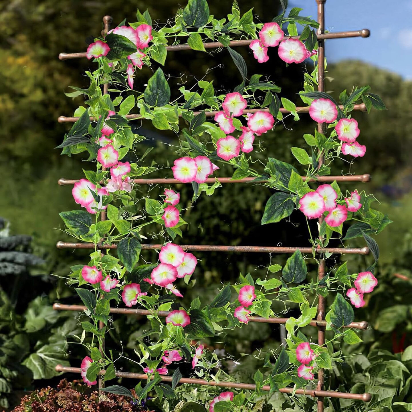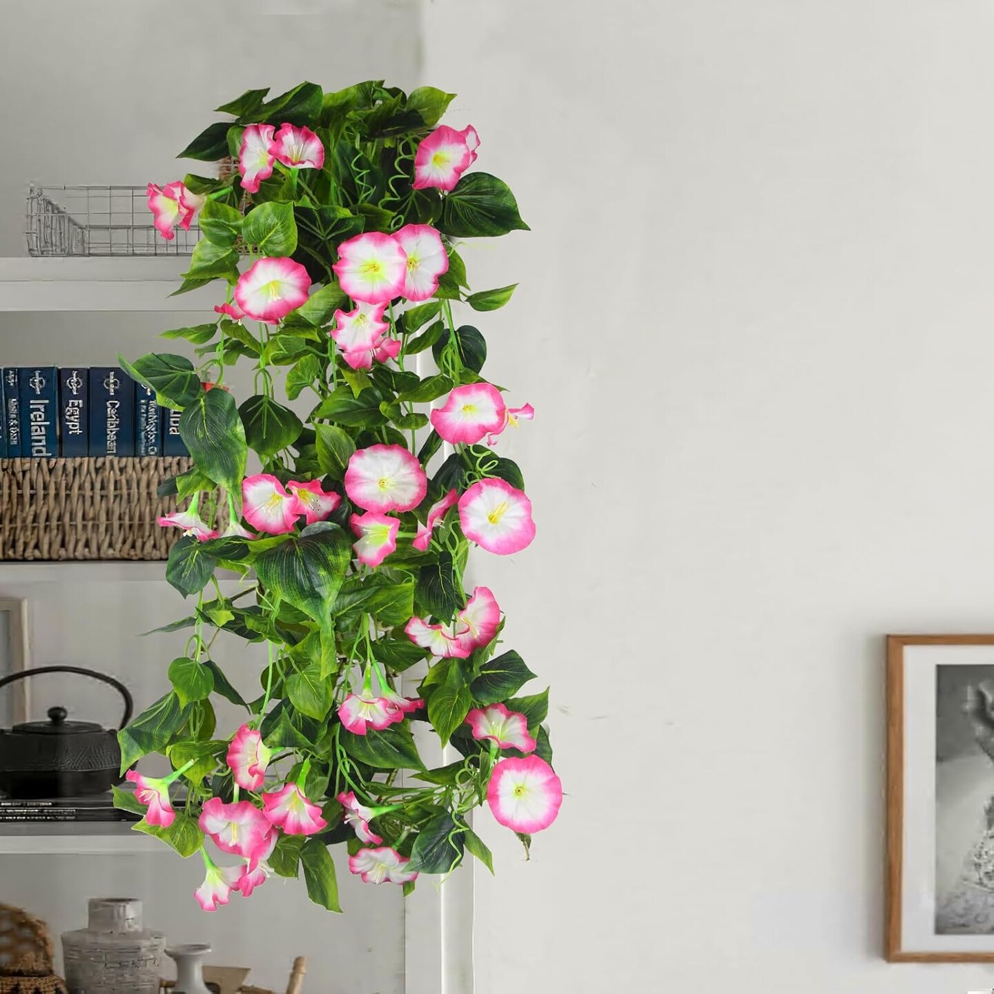 2 Pcs Artificial Morning Glory Vines – 15 ft Silk Hanging Pink & Green Vines for Home, Wall, Fence, Stairway, Wedding & Outdoor Décor