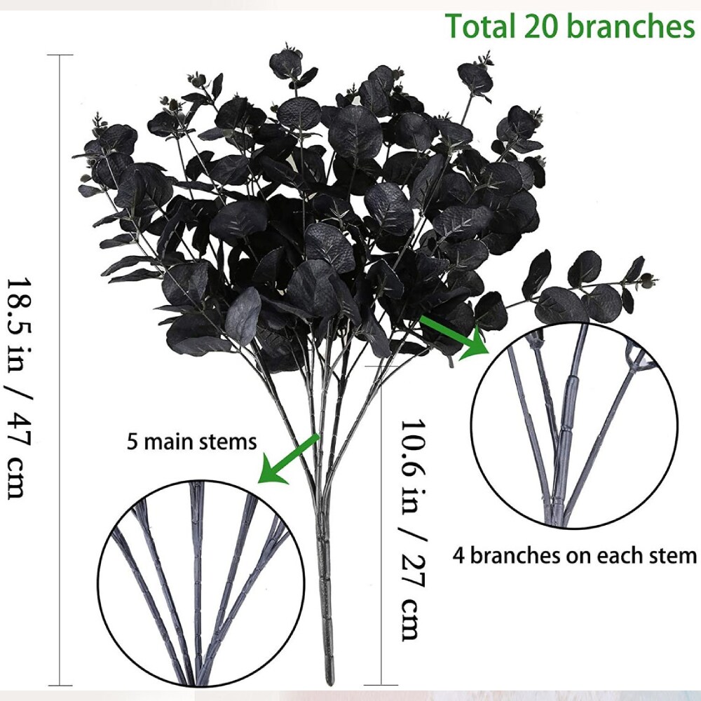 2 pcs Black Eucalyptus Stems with Artificial