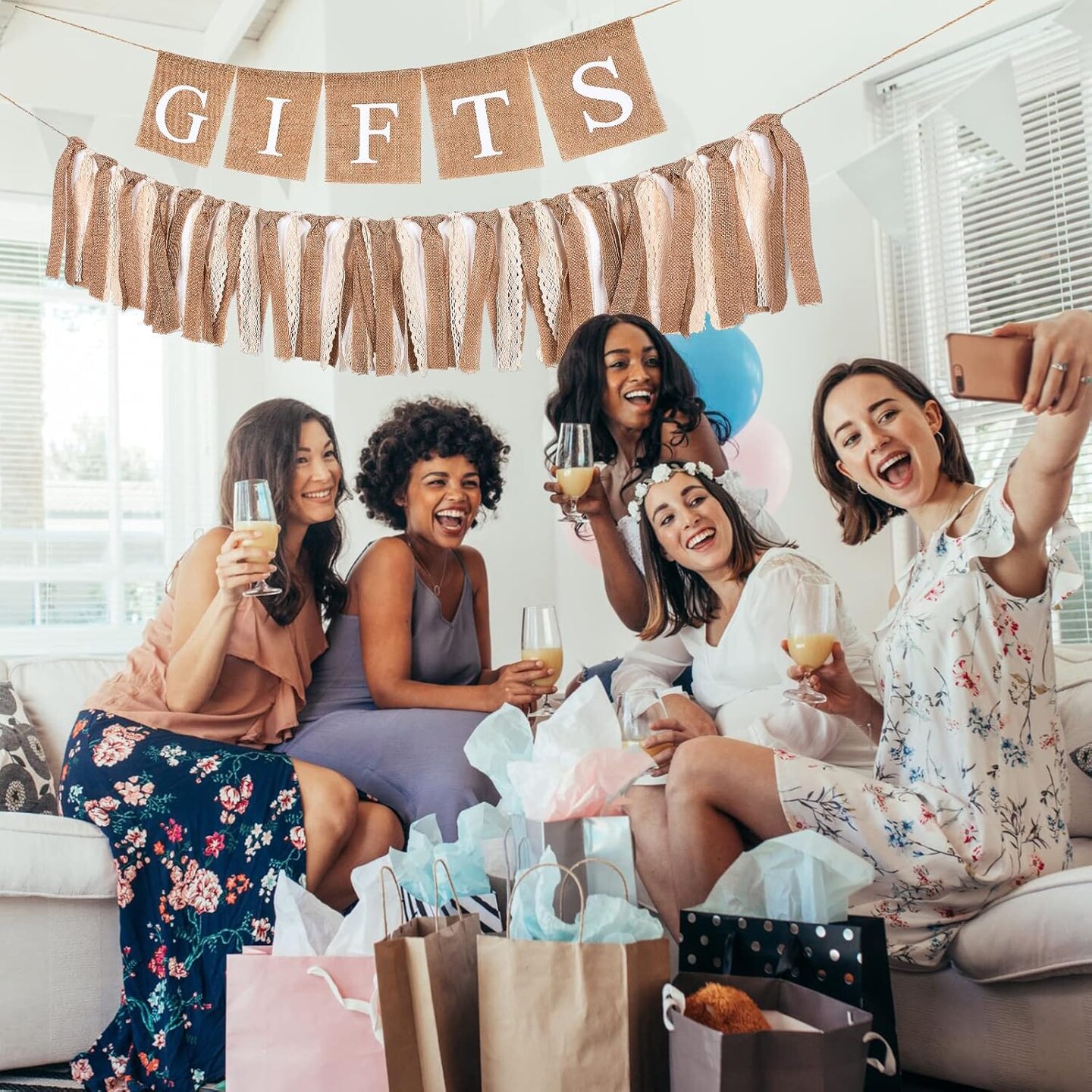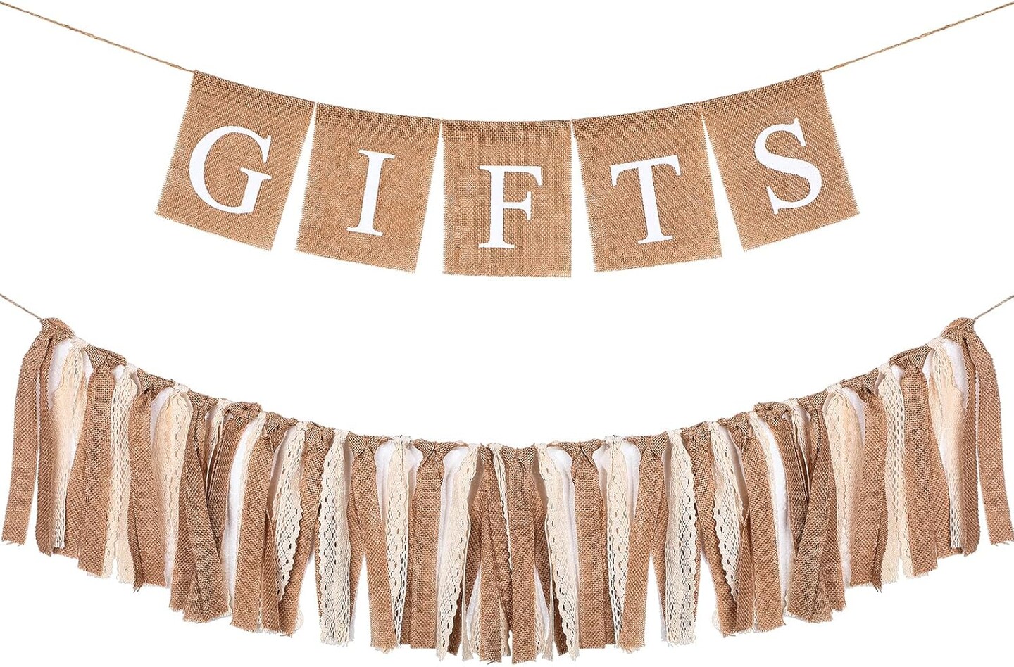 2 Pcs Boho Burlap Banner Baby Shower Decorations Set Include Rustic Gift Banner
