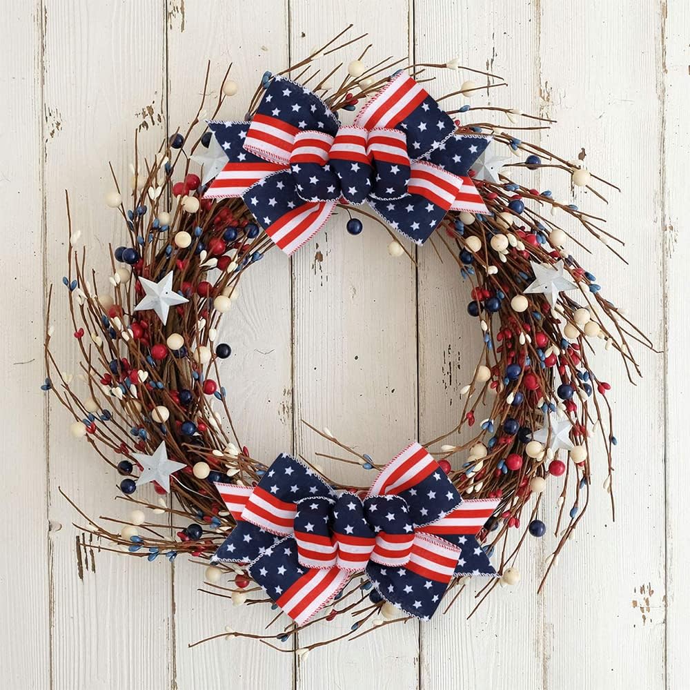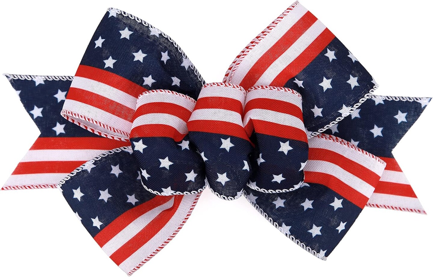 2 PCS Handmade Christmas Burlap Bows – Large Premade Decorative Bows for Wreaths, Trees, Gift Wrapping, and Holiday Party Décor (Rustic Patriotic Style)