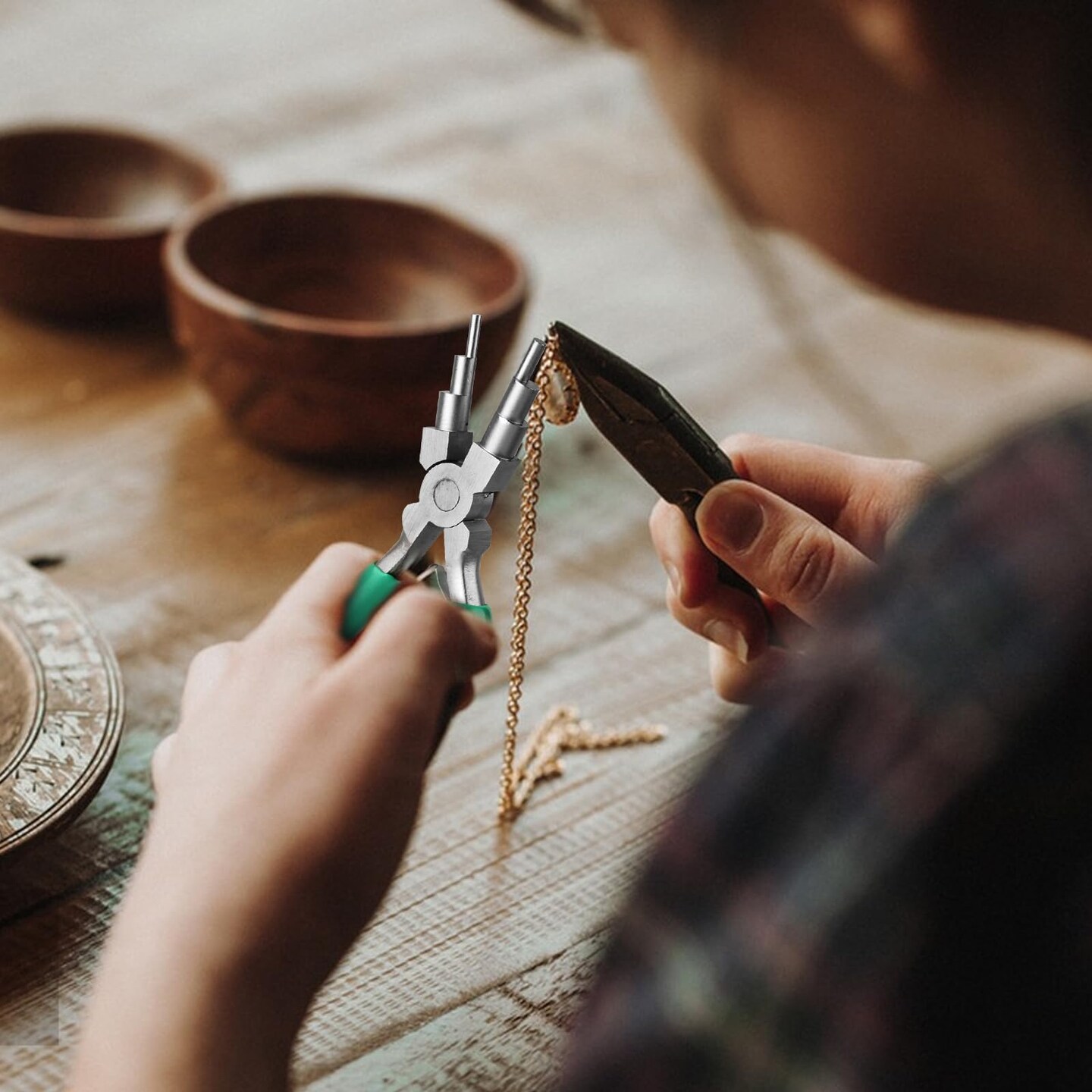 2 pcs Jewelry Pliers Set, Include: 6-Inch 6-Step Bail Making & Nylon Jaw Pliers for Wire Wrapping