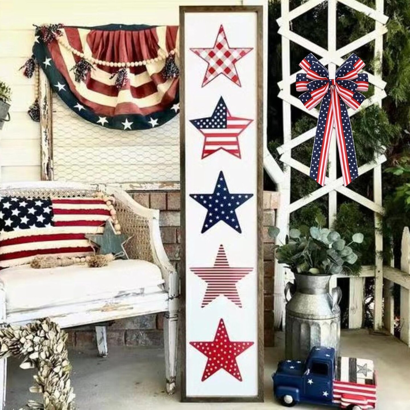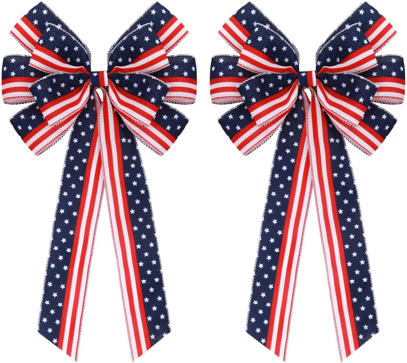 2 Pcs Large Patriotic Bows for Wreaths American Flag Stars Bow for 4th of July,Independence Day Bunting Indoor Outdoor Party Decor (Red White Blue Star Bows)