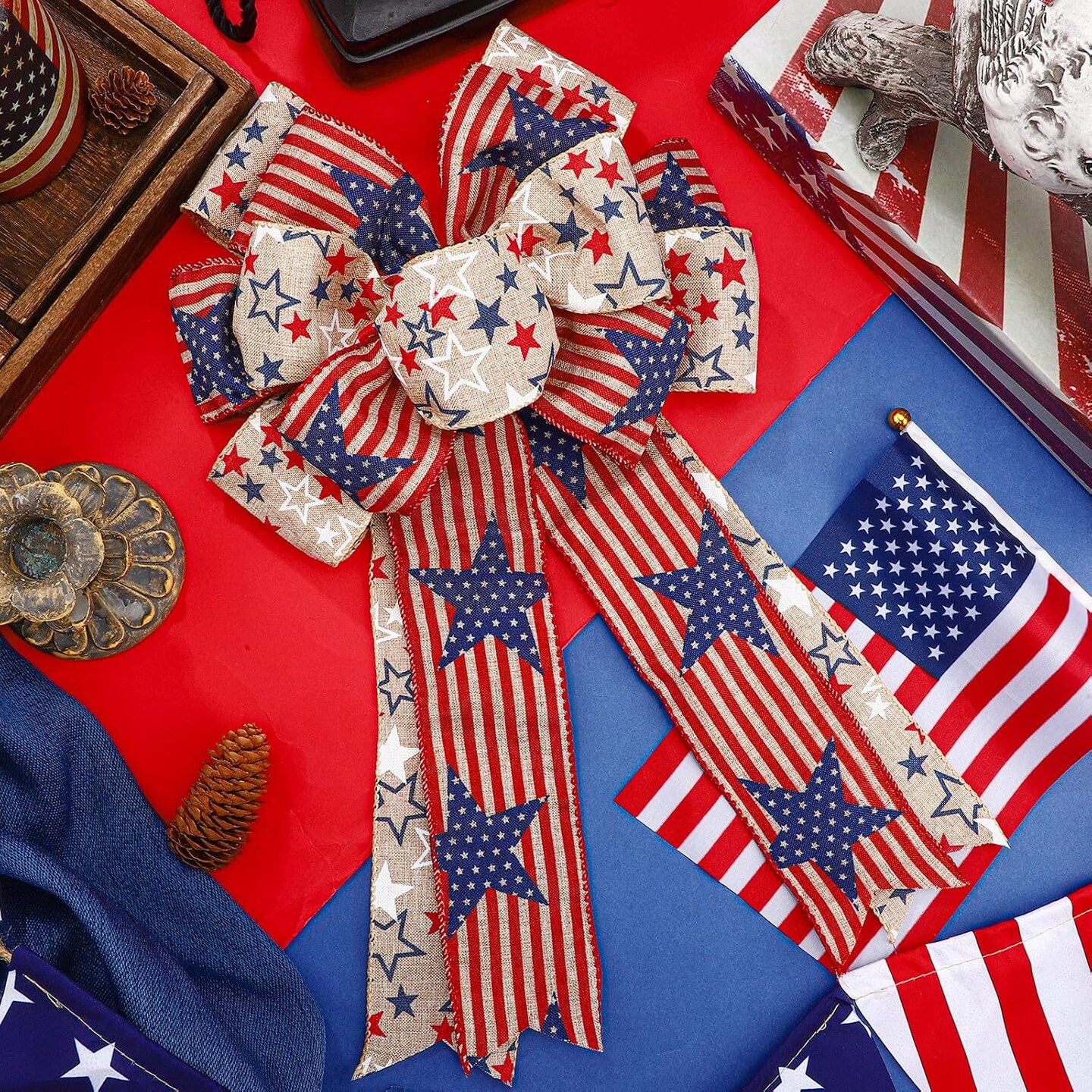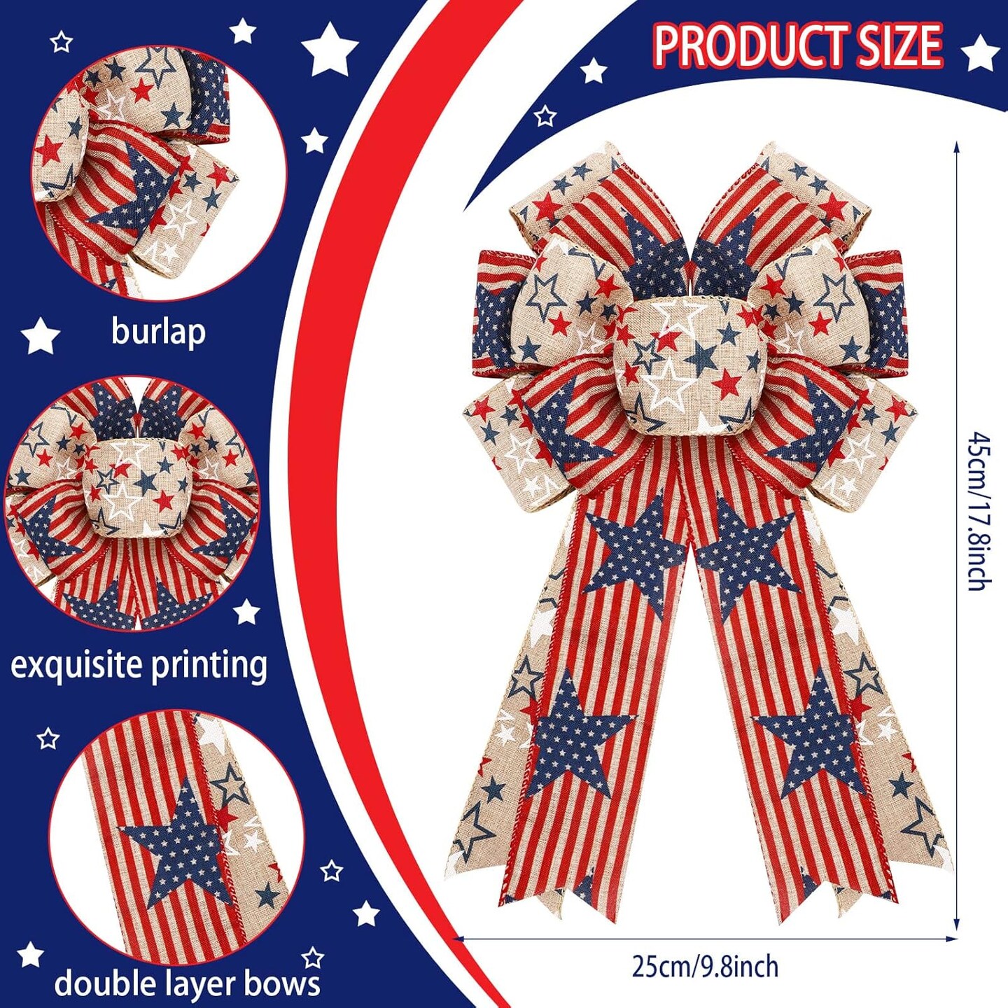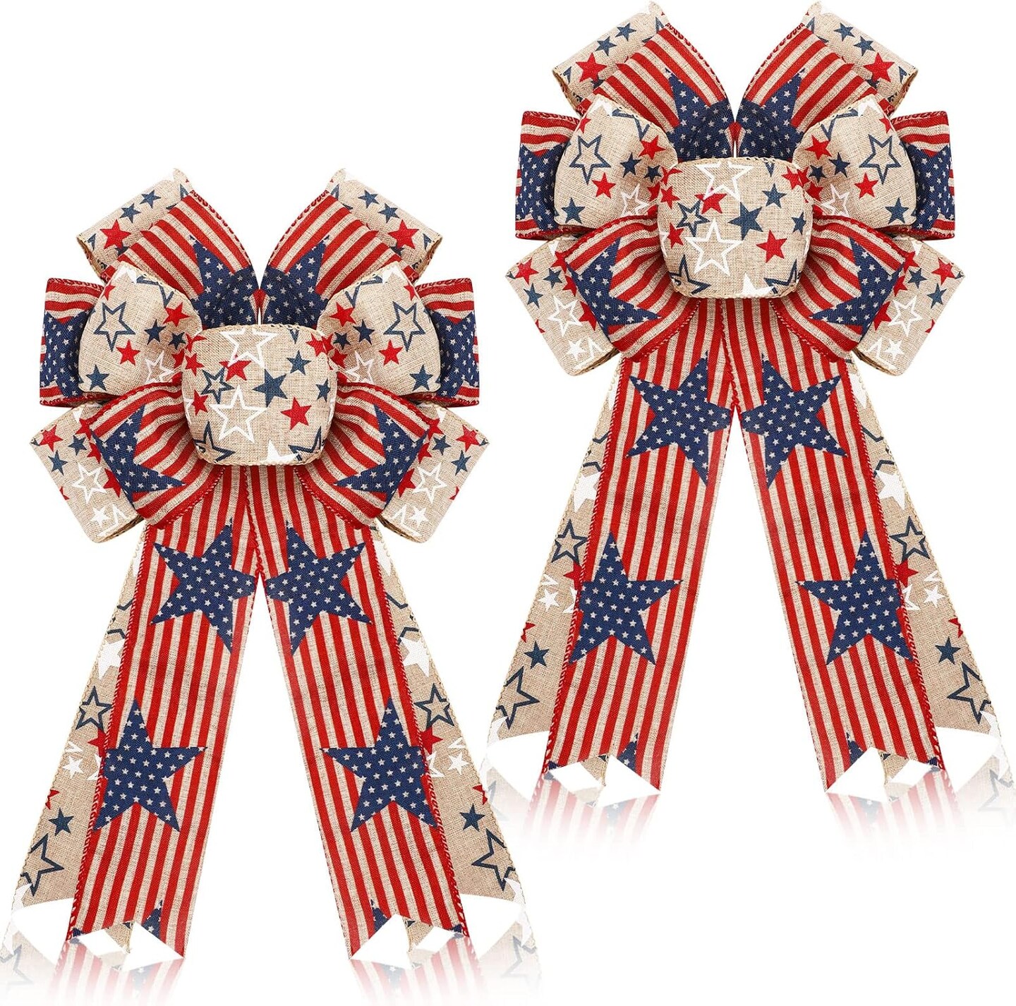 2 Pcs Large Patriotic Wreath Bow Decor, 4th of July (Multicolored)