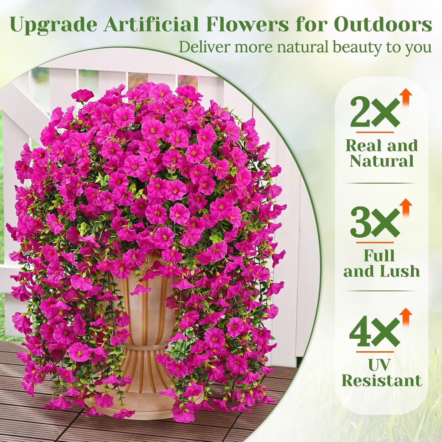 2 Pcs Look Real Artificial Flowers for Outdoor (Fuschia)