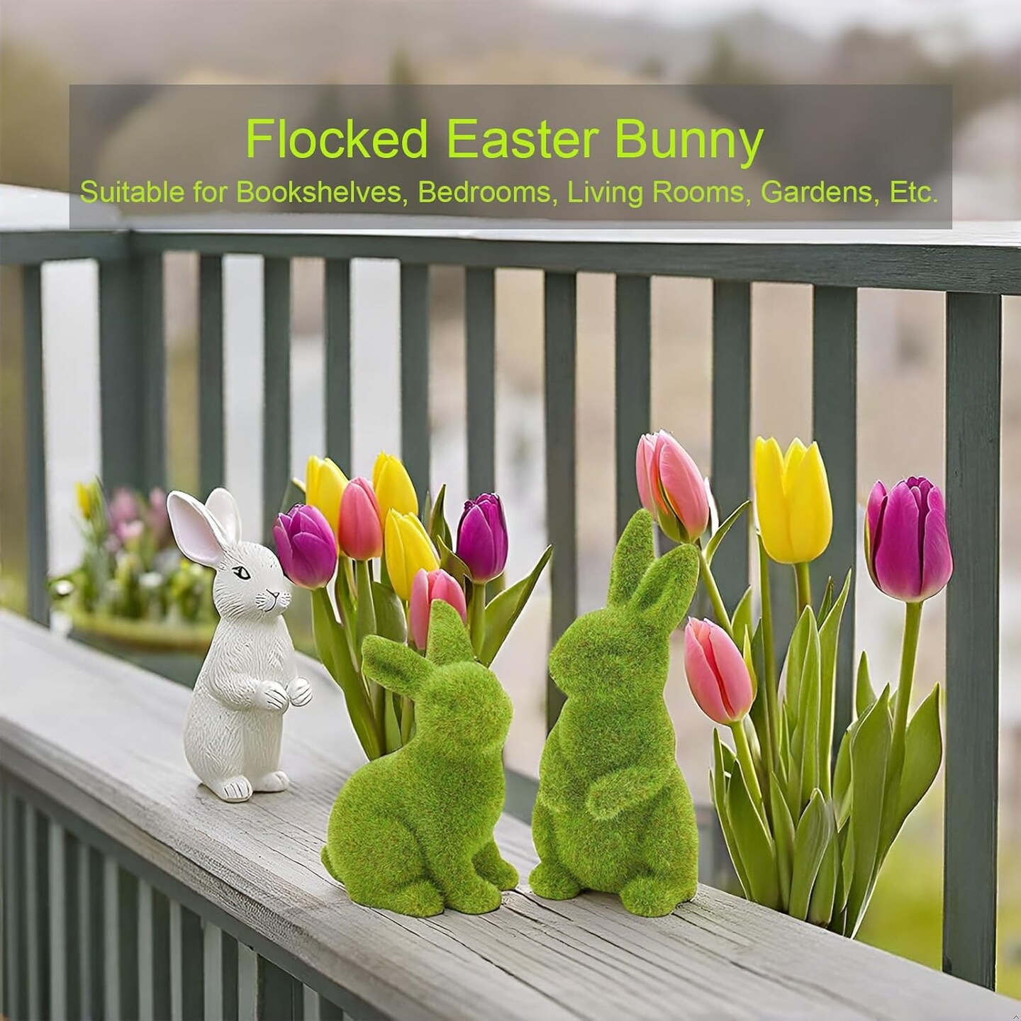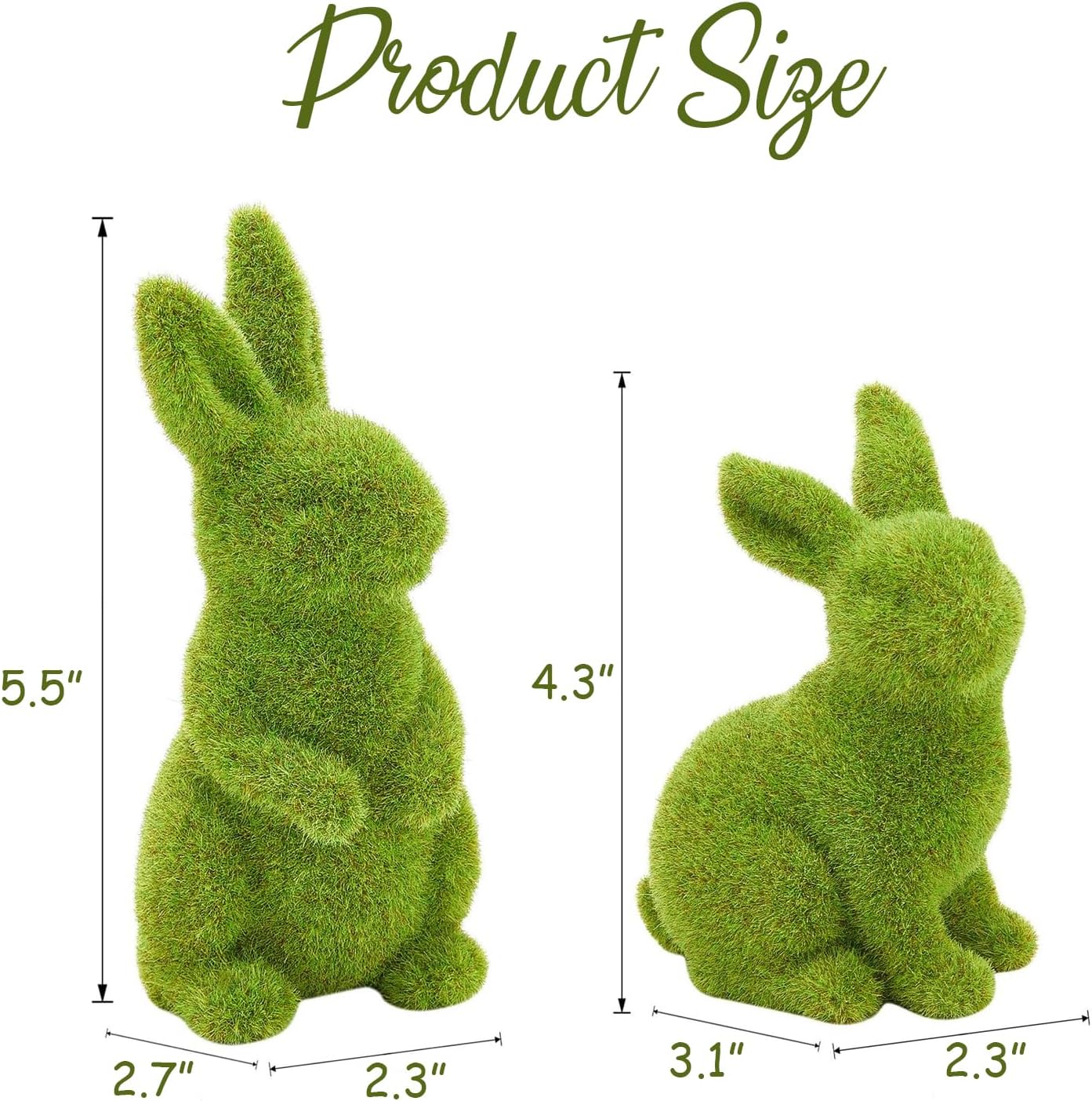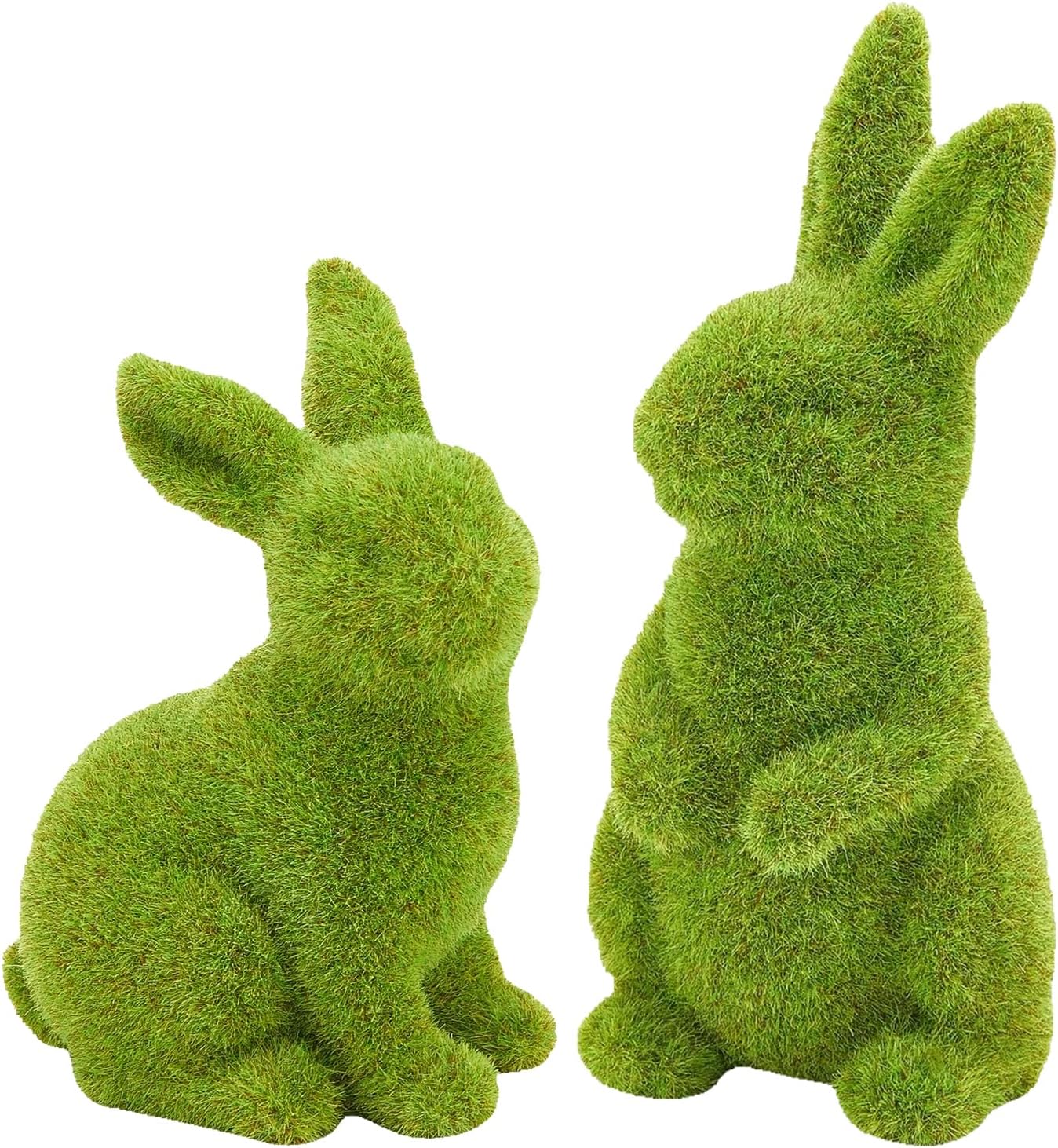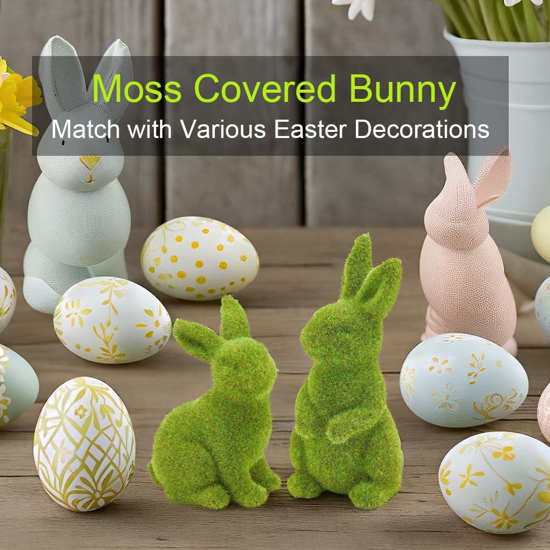 2 PCS Moss Bunny Decorative Figurines Flocked Resin Easter Bunny Decor Green Moss Bunnies for Spring Indoor Table and Bookshelf Decorations Home Rabbit Decorations(Small)