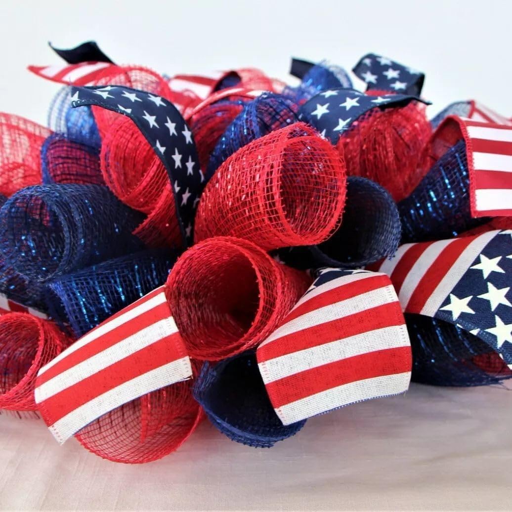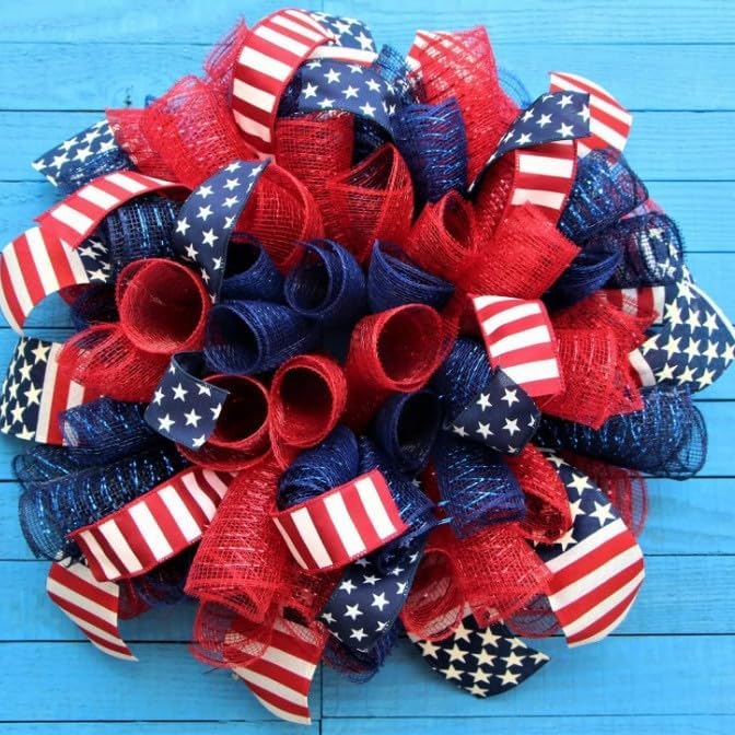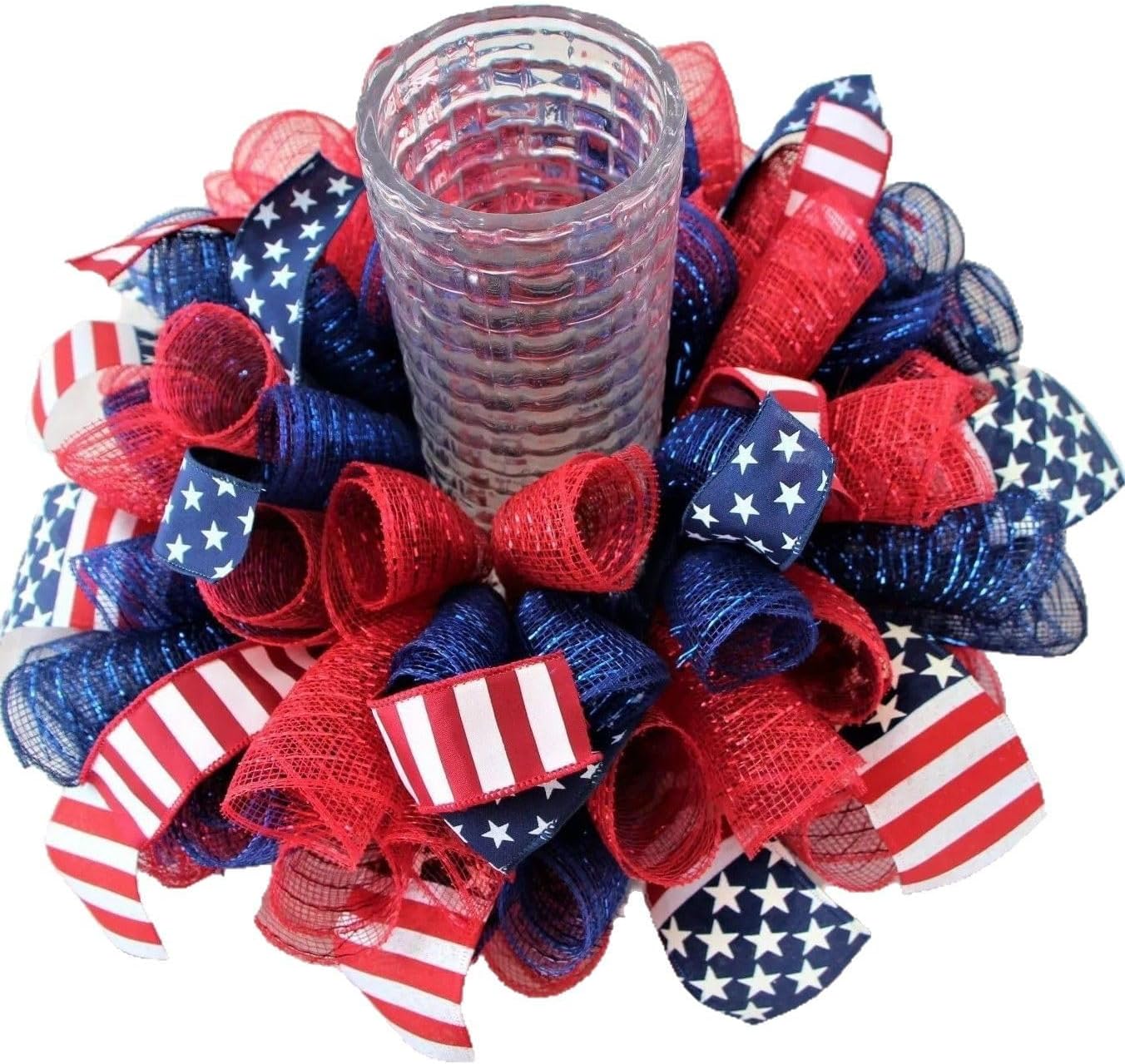 2 Pcs Patriotic Burlap Candle Holder Wreaths Rings, Patriotic Flag Color Fourth of July Berries Candlerings