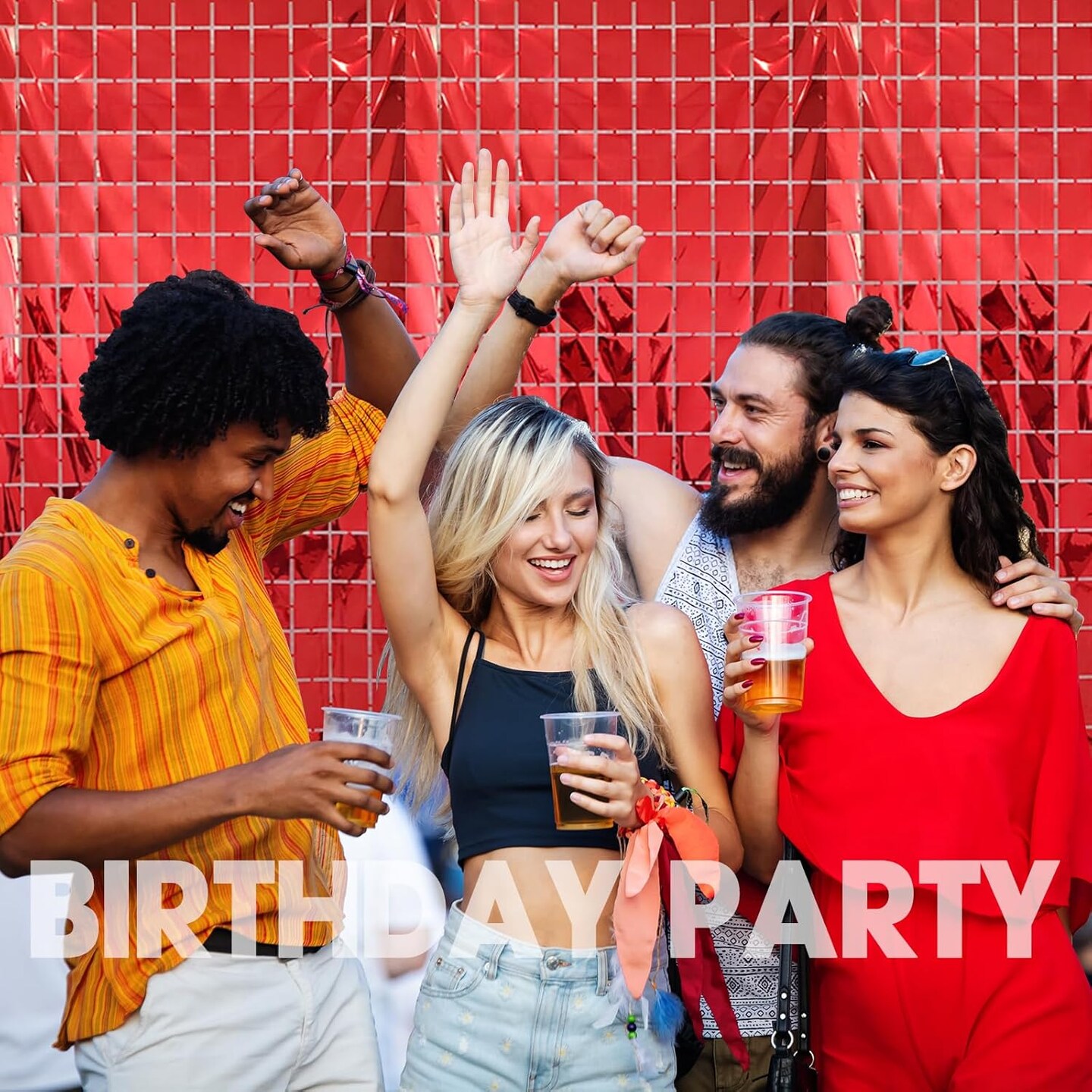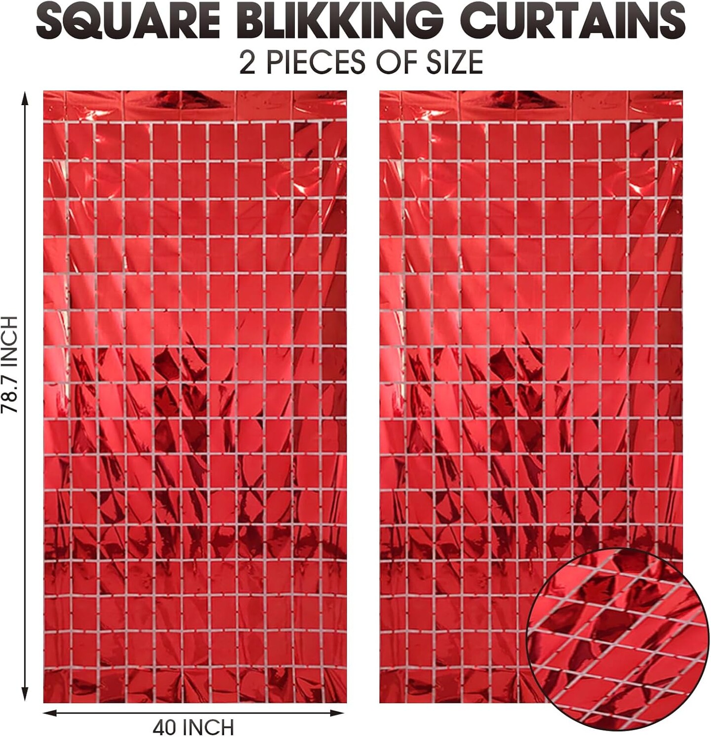 2 Pcs Red Foil Fringe Square Curtain Backdrop - Blue Streamers Party Decorations, Sequin Square Curtain Photo Backdrop Props for Birthday Party Graduation Bachelorette Wedding Decor, 3.3 x 6.6 Ft