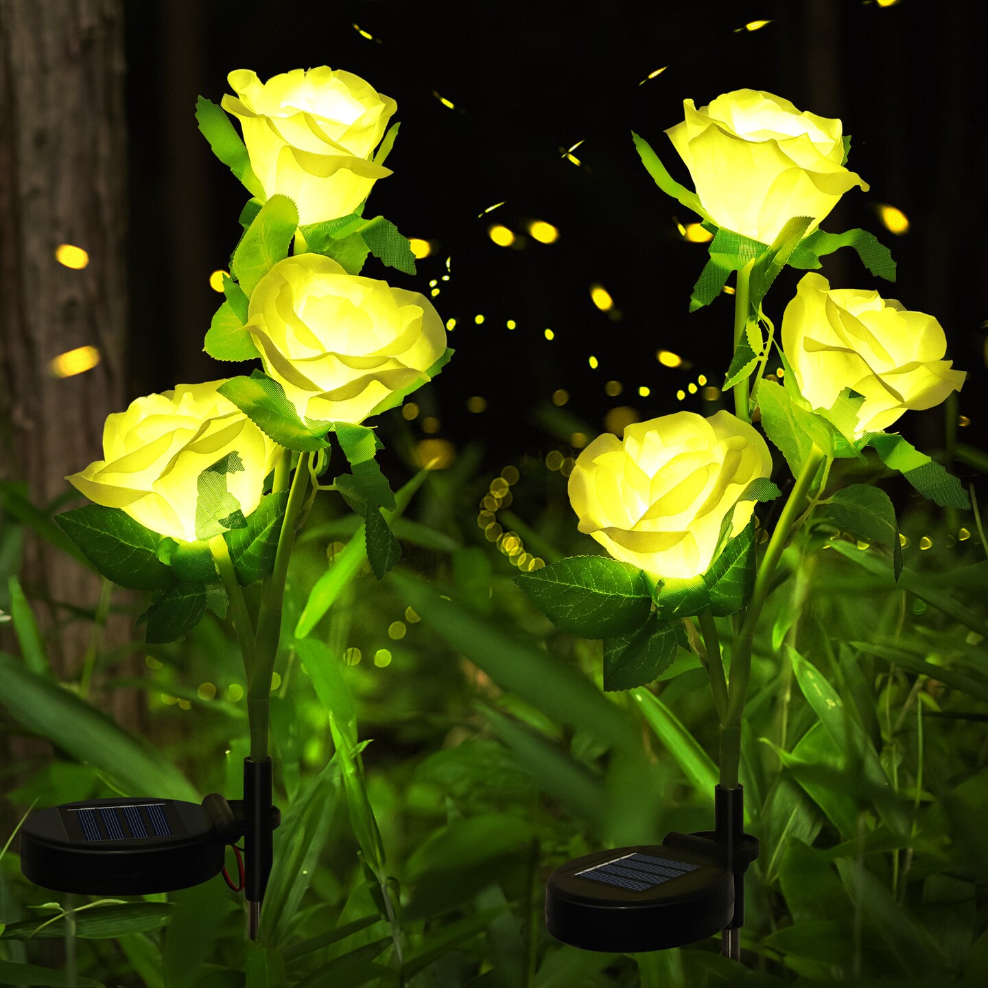 2 Pcs Solar Flowers LED Light Outdoor Garden Yard Stake Solar Flower Lights