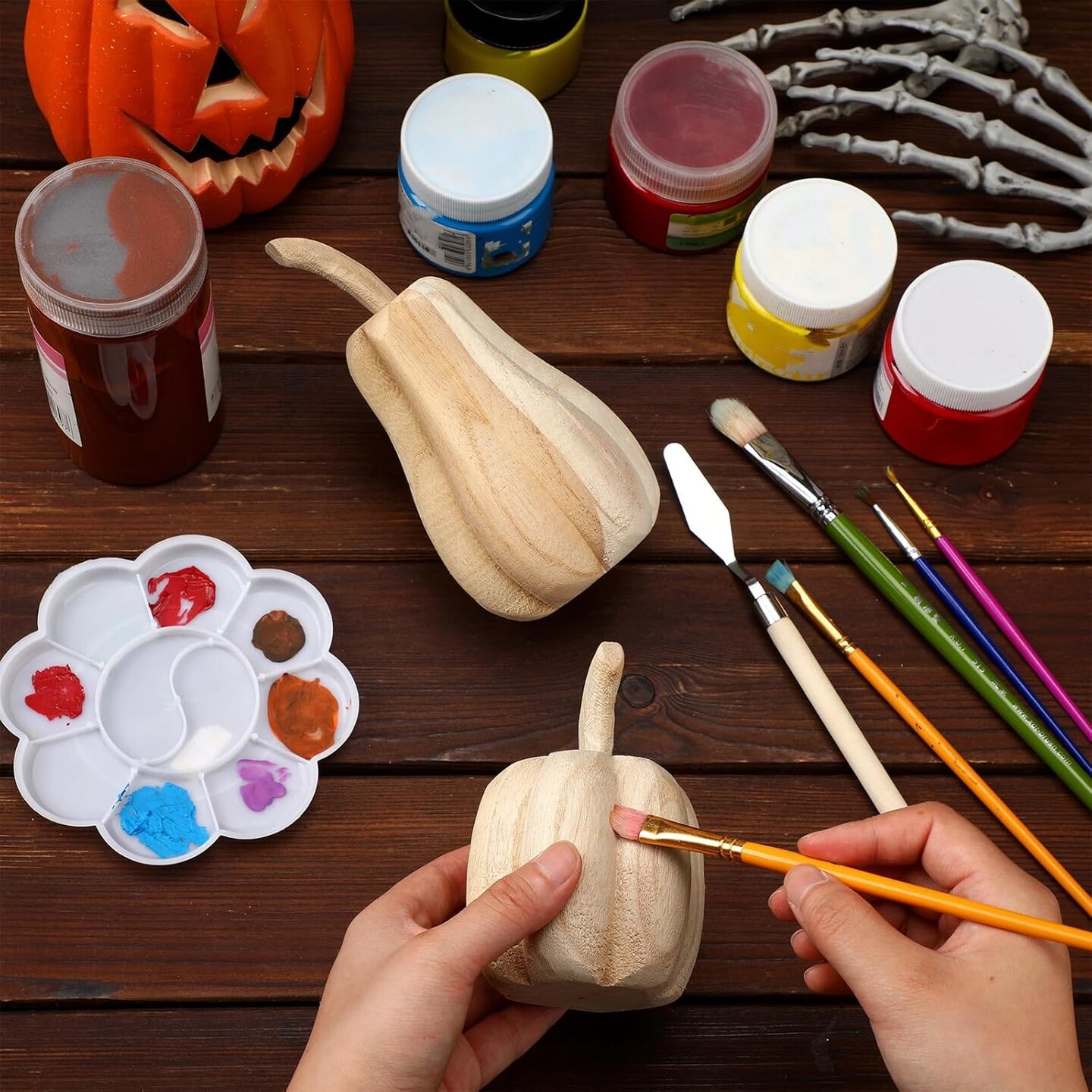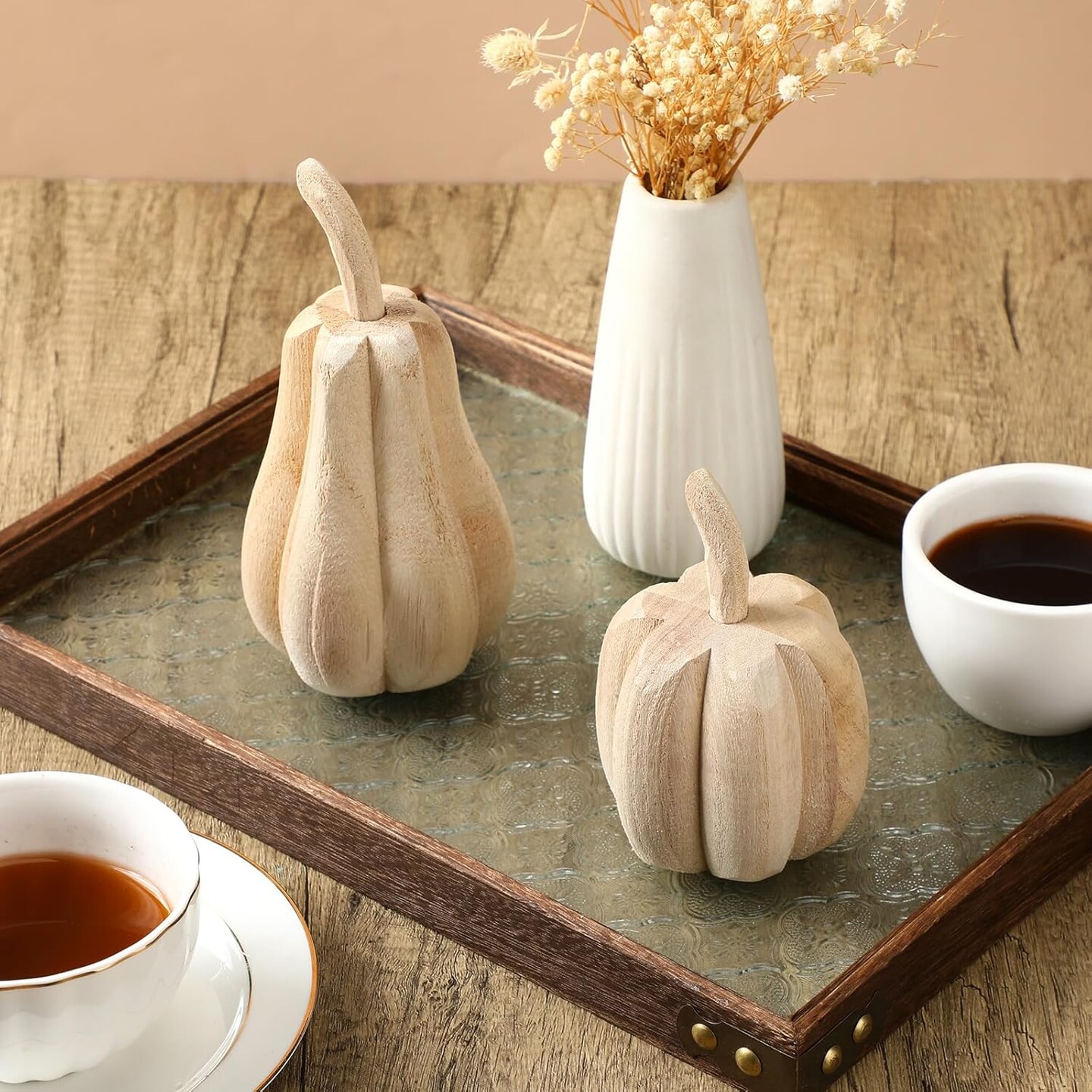 2 Pcs Thanksgiving Paulownia Wood Carved Pumpkins