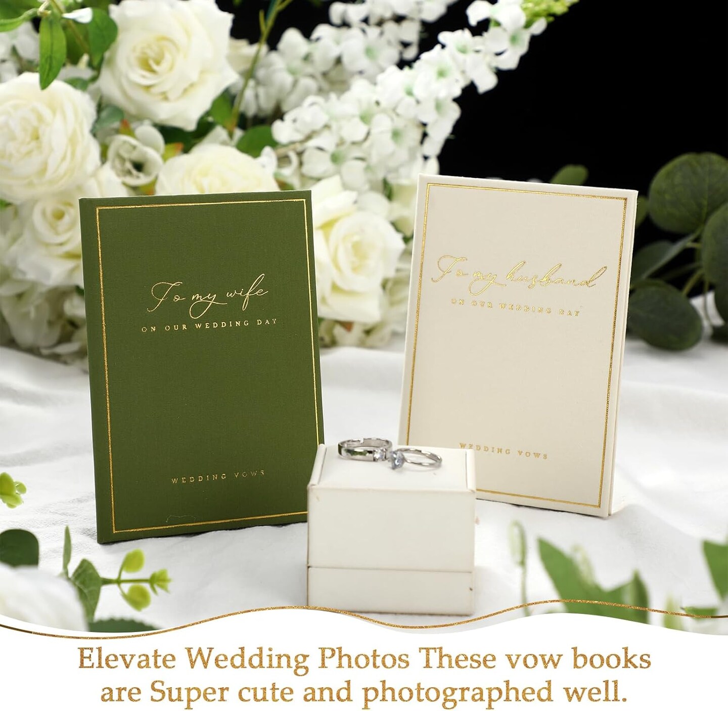 2 Pcs Vow Books to Husband Wife Wedding Book with Gold Foil Lettering Lined Page Hard Cover Vow Book Engagement Gift for Groom Newly Engaged Couple Wedding Must Have(Dark Green-Light Green)