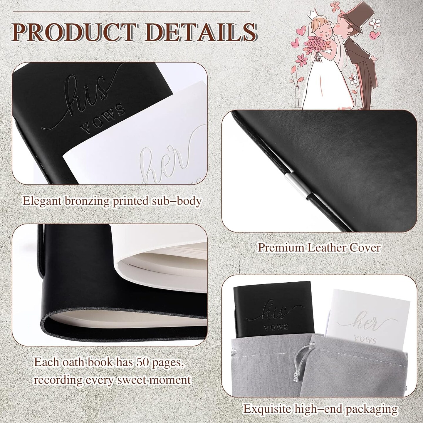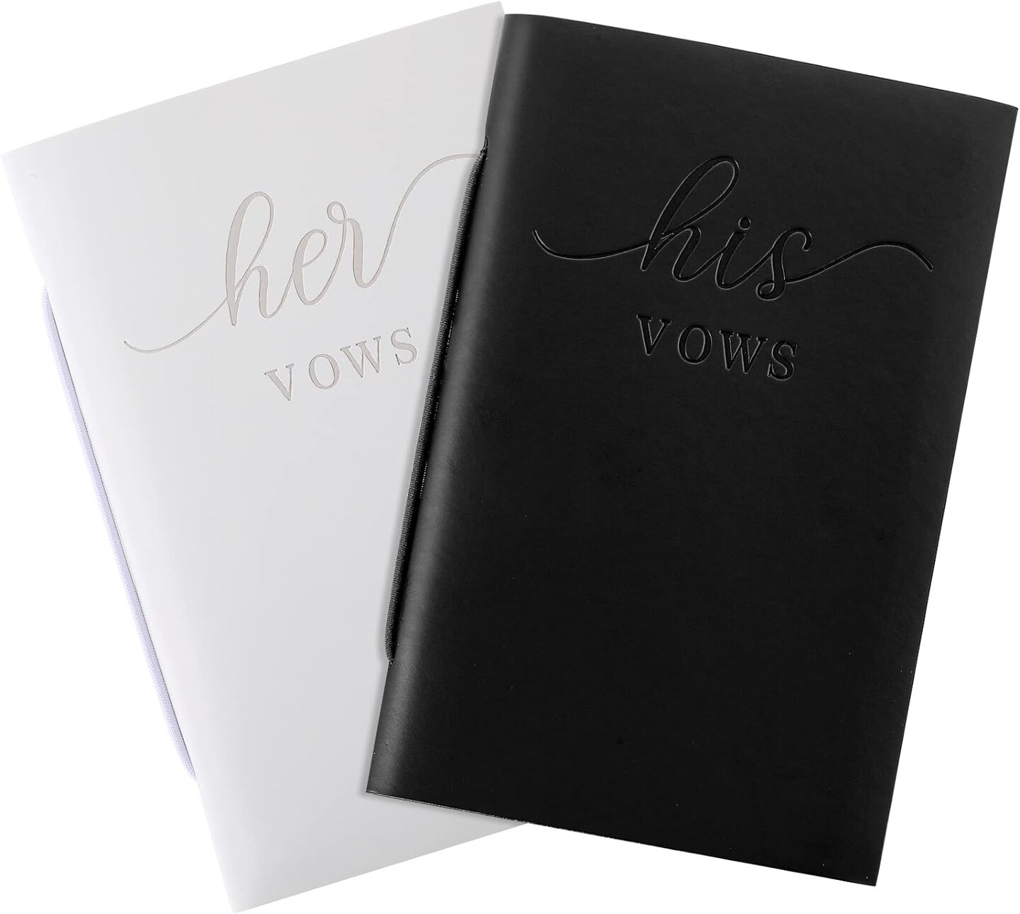 2 Pcs Wedding Vow Journals His and Hers Vow Journals for Wedding Vows Journal Wedding Day Officiant Journals 5.9 x 3.9 Inch, Bridal Shower Gifts, Wedding Keepsake, 50 Pages/Pcs (White, Black)