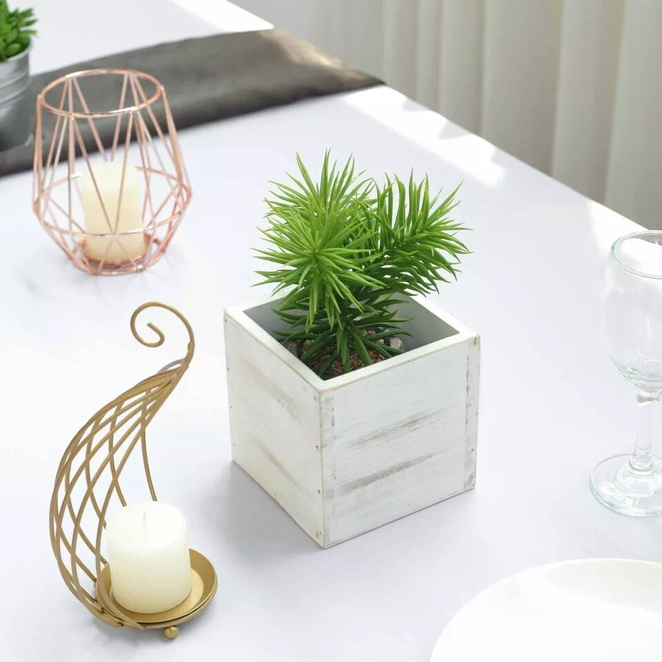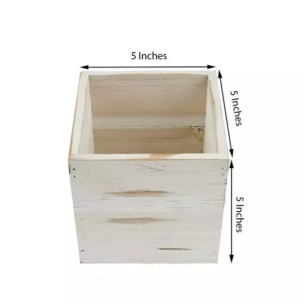 2 pcs White Washed 5" Natural Wood Square Plant Holder Boxes