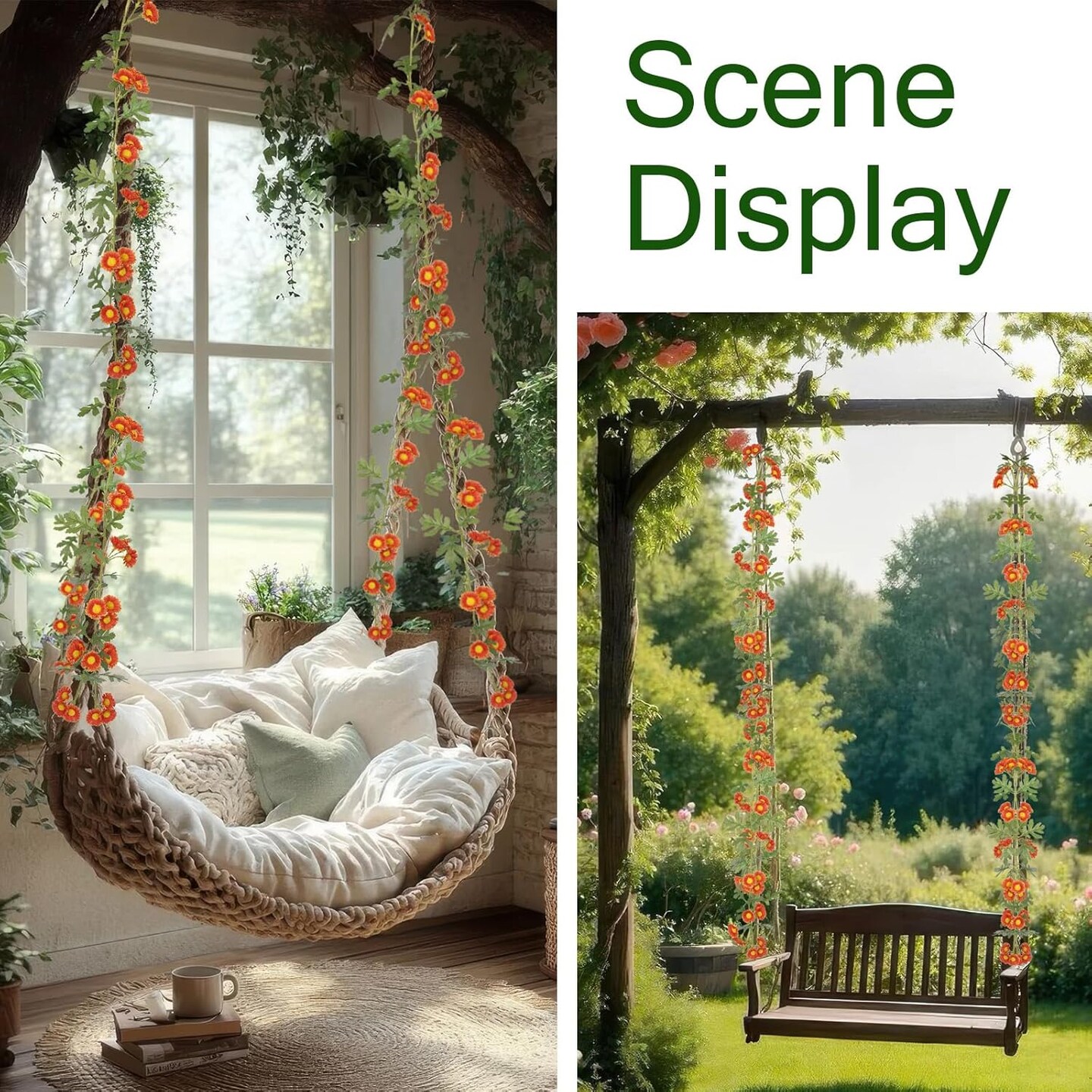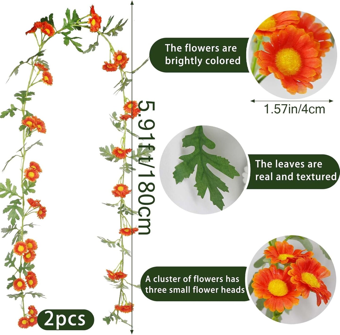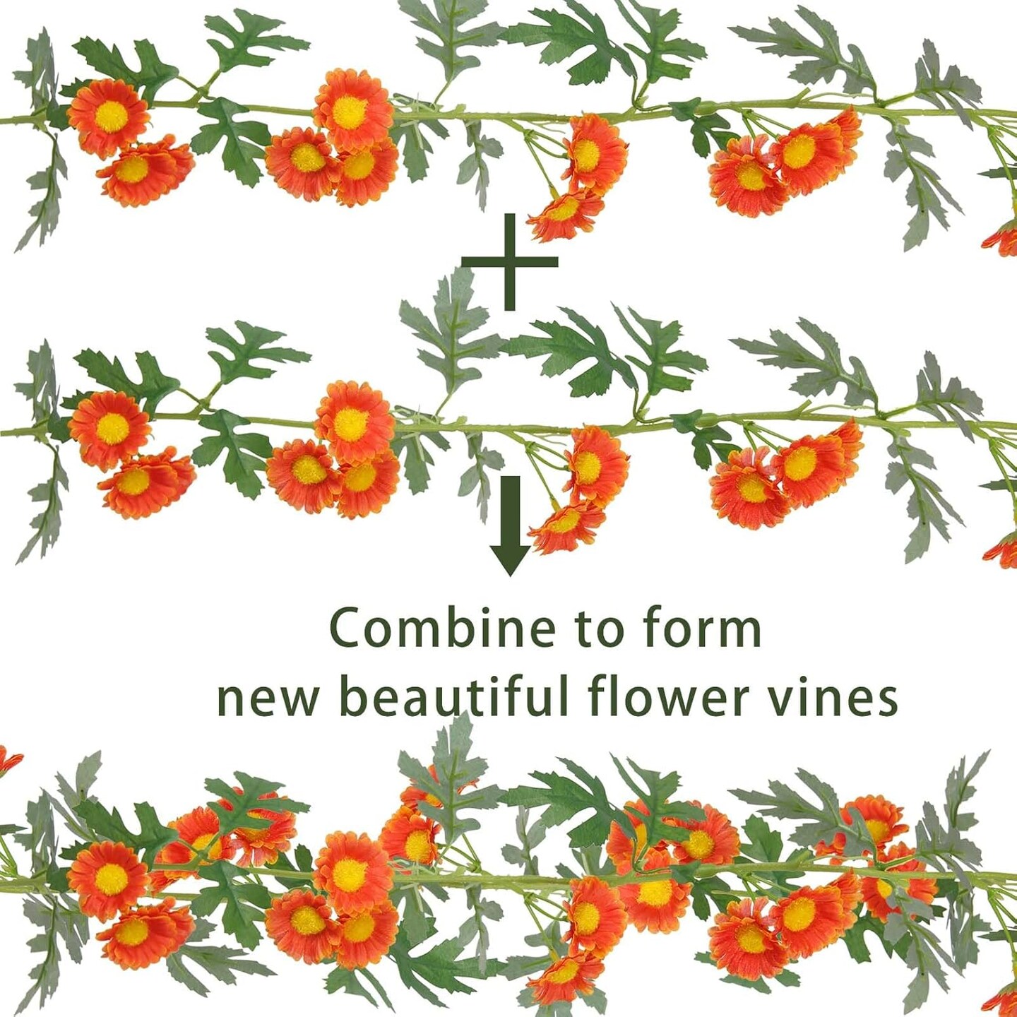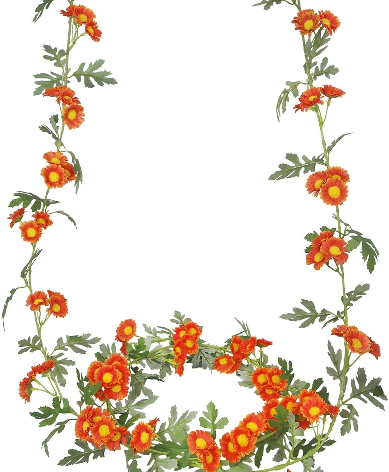2 Pcs Wildflower Garland Spring Flowers Garland 12 FT Orange Artificial Daisy Flowers and Leaves Faux Floral Vine for Mantle Baby Shower Wedding Arch