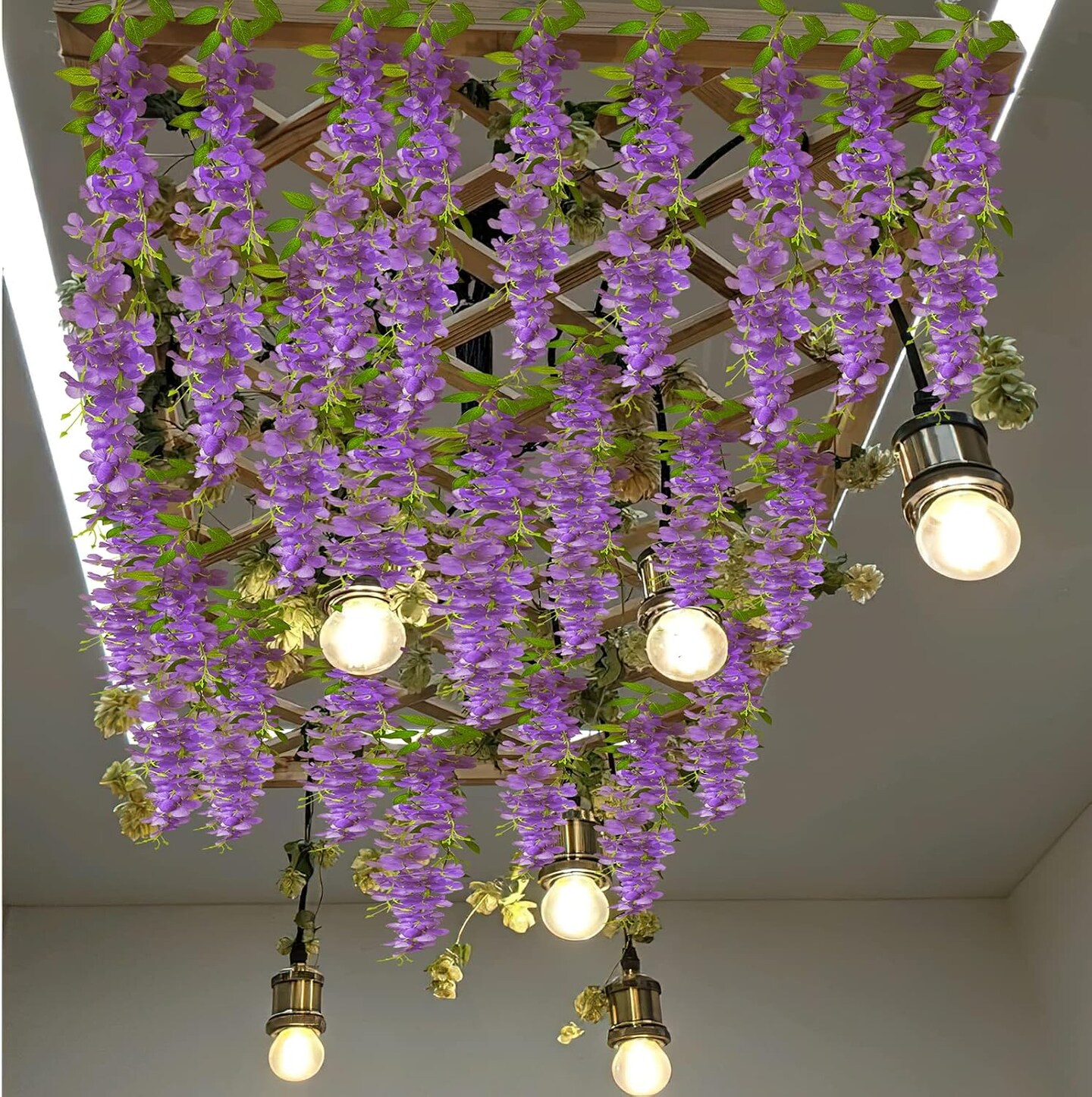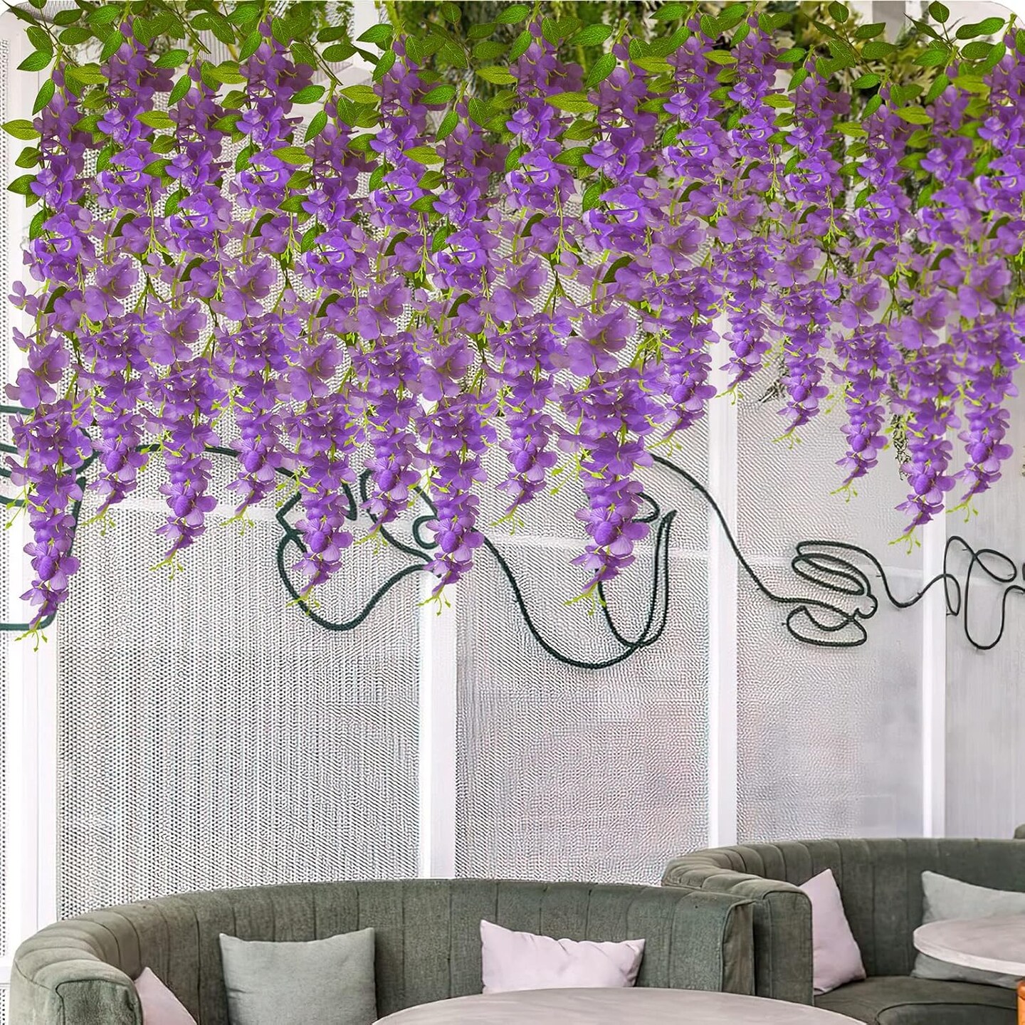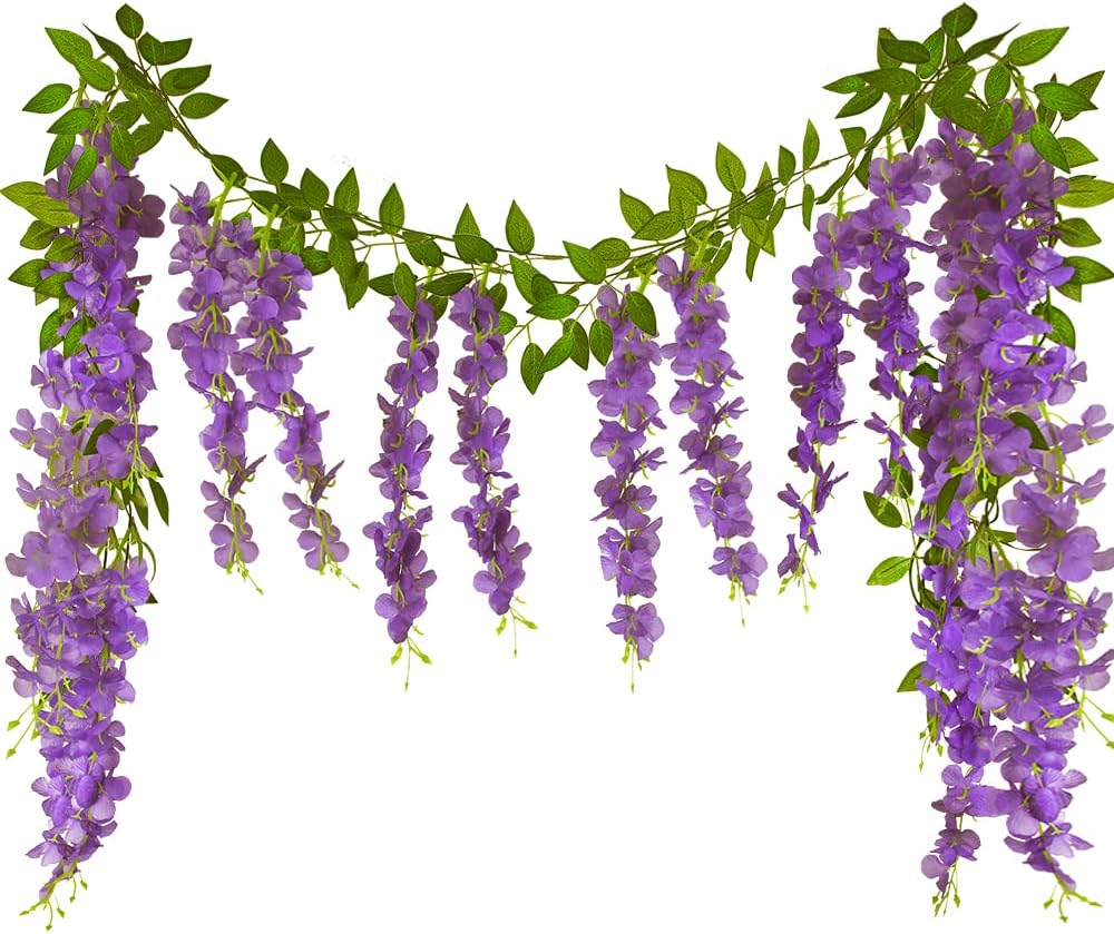 2 Pcs Wisteria Hanging Flowers Vines Purple Wisteria Flowers Vine Garland Artificial Wisteria Vines Hanging Flower Silk