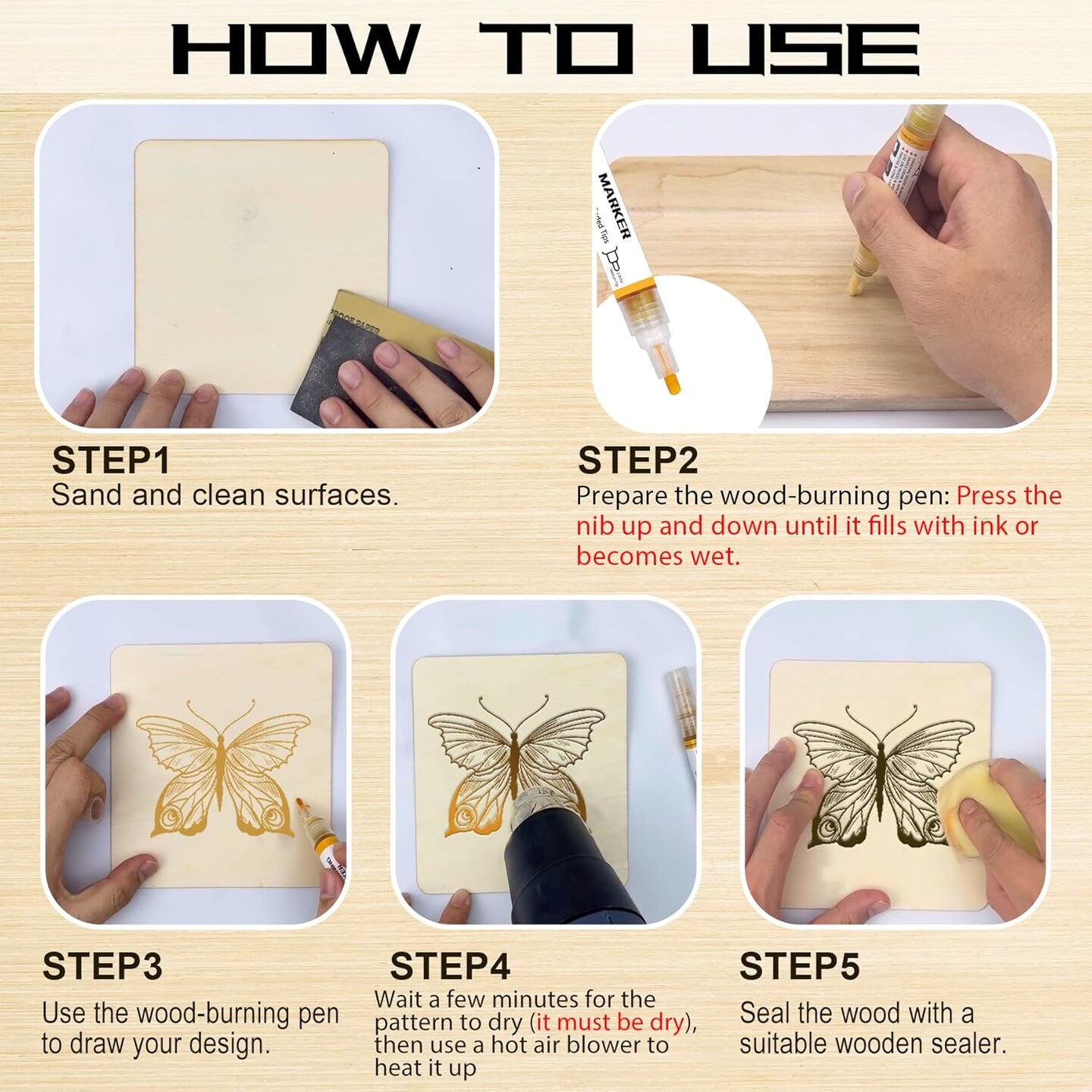 2 PCS Wood Burn Marker Pen, Wood Marker Burning Pen Used for Drawing Wooden Burning Marker, Making It an Ideal Choice for Making Gifts, Handicrafts. Suitable for Beginners(comes with 4 nibs