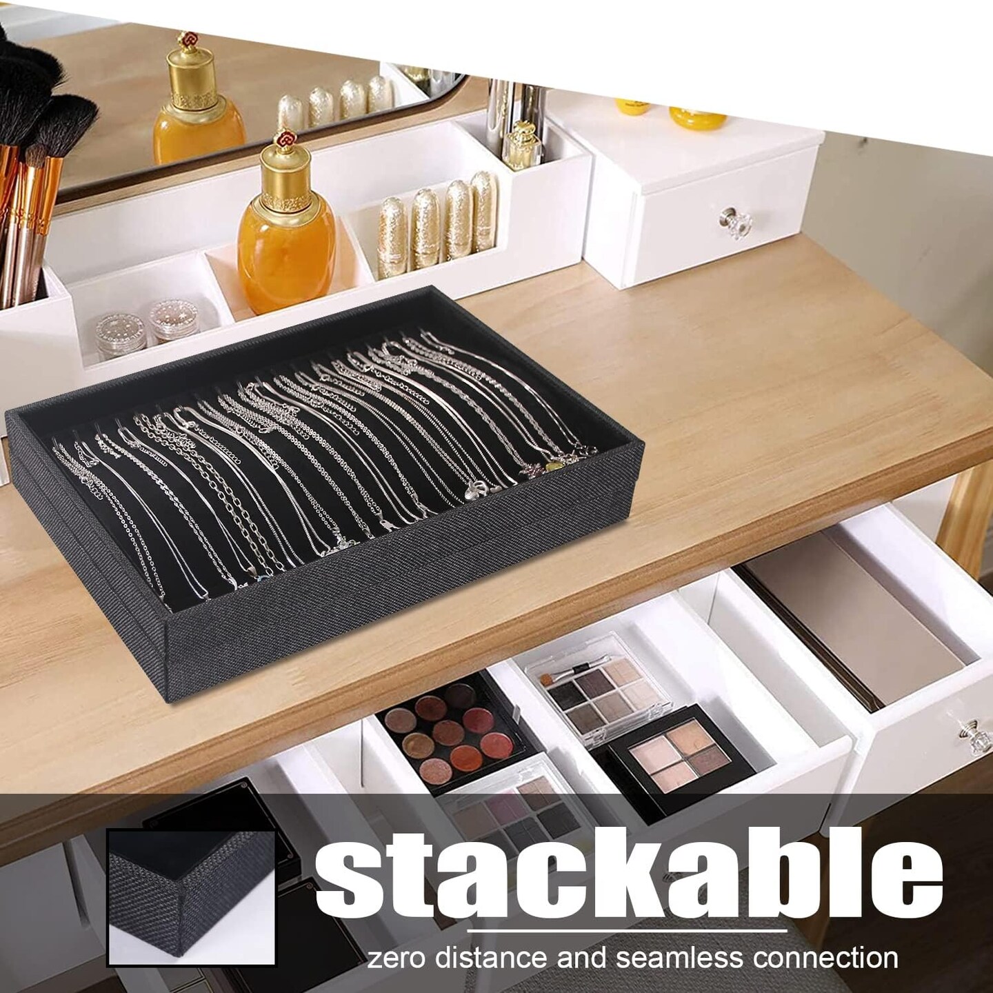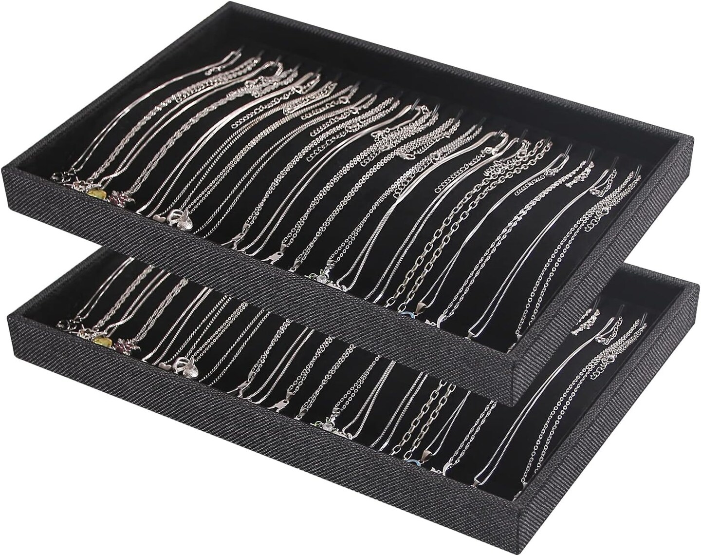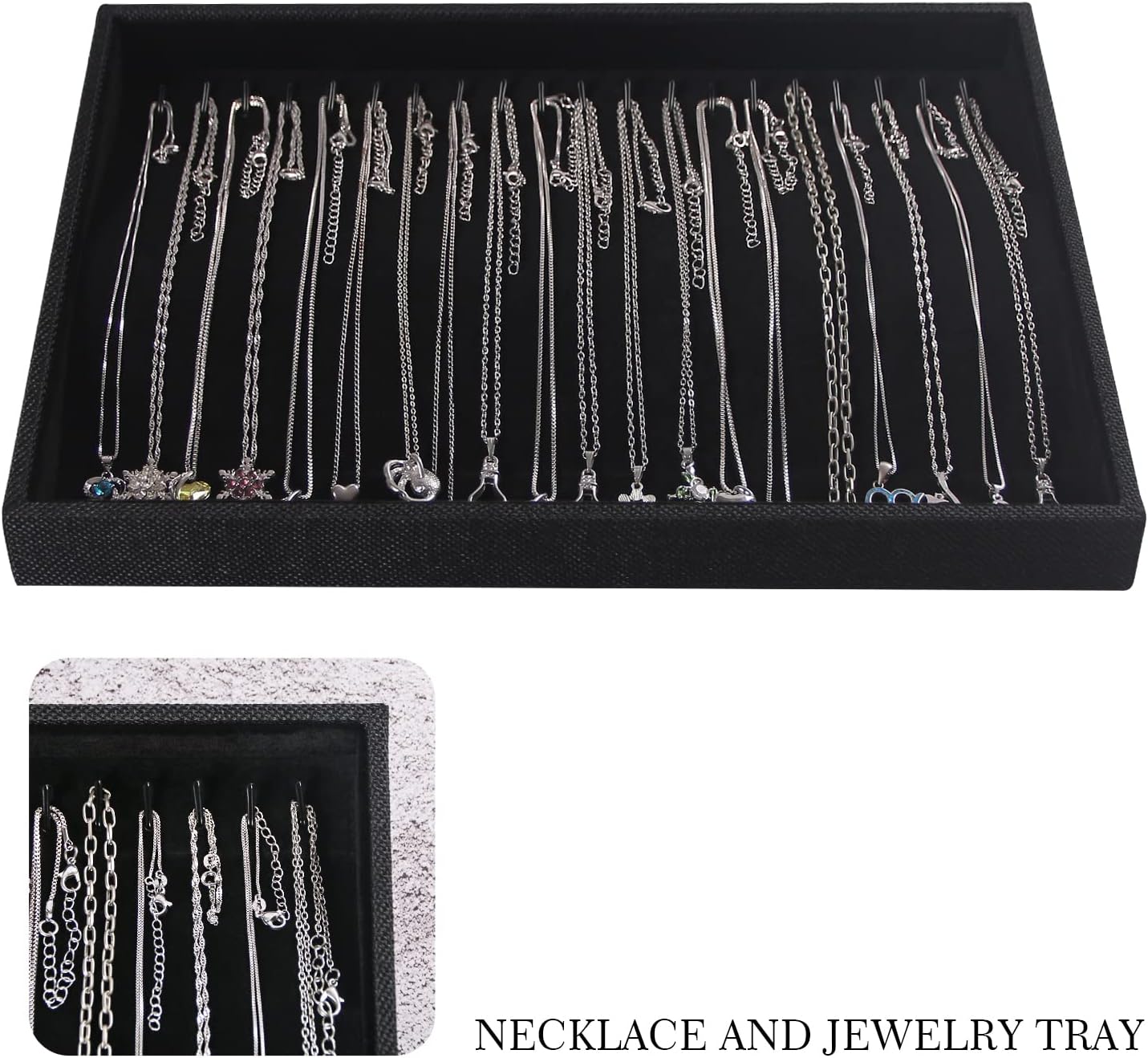2 Pcs/set Stackable Jewelry Organizer Trays,Necklace Tray+Necklace Tray, Jewelry Displays for Selling,Black