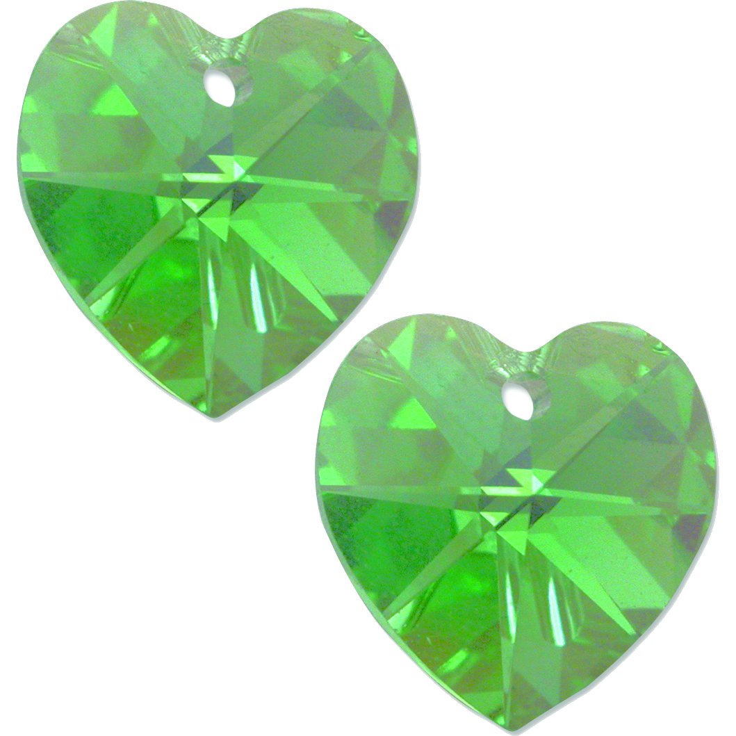 2 Peridot AB Swarovski Crystal Heart Pendant 6202 10mm