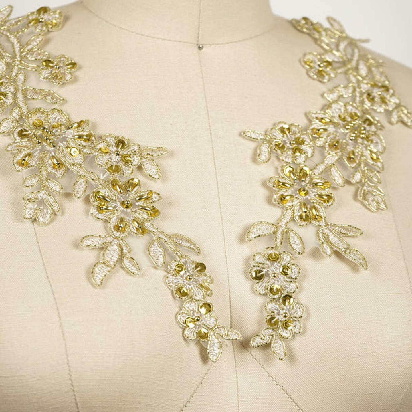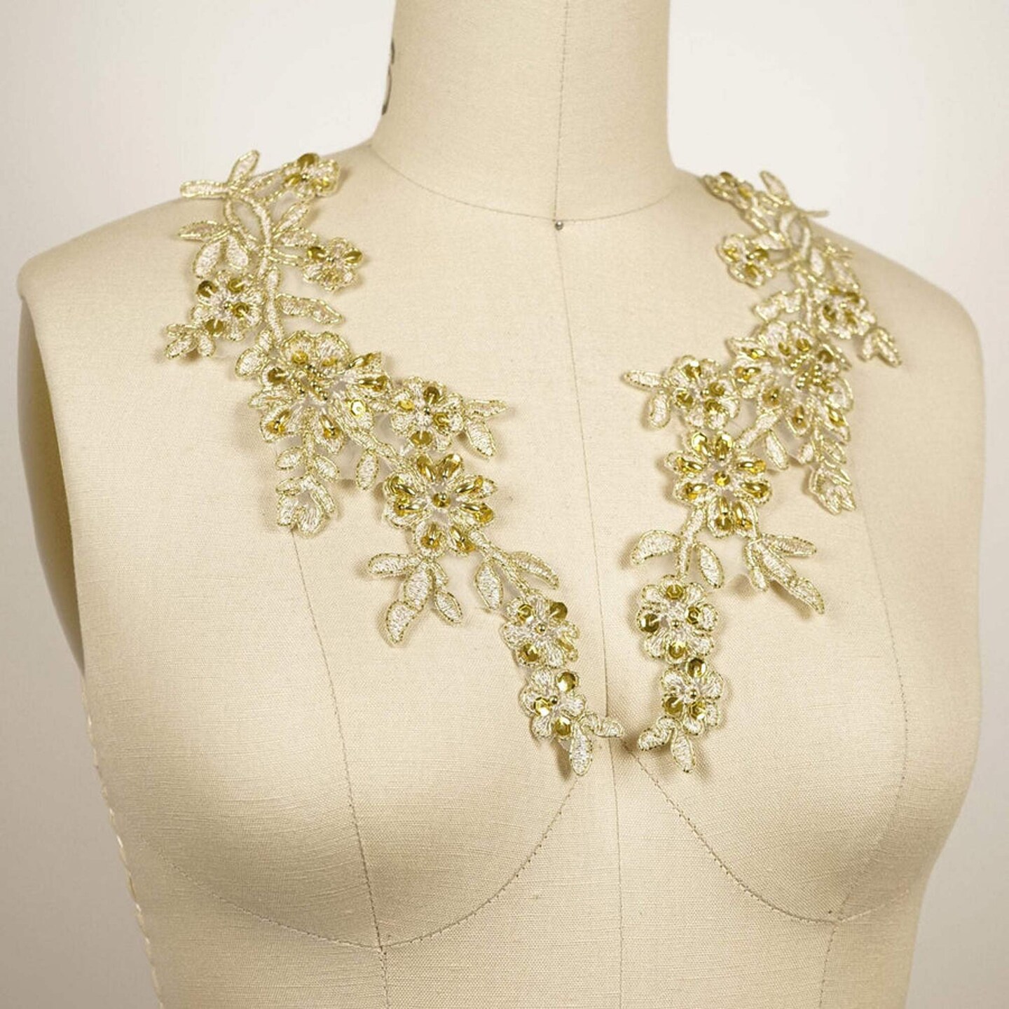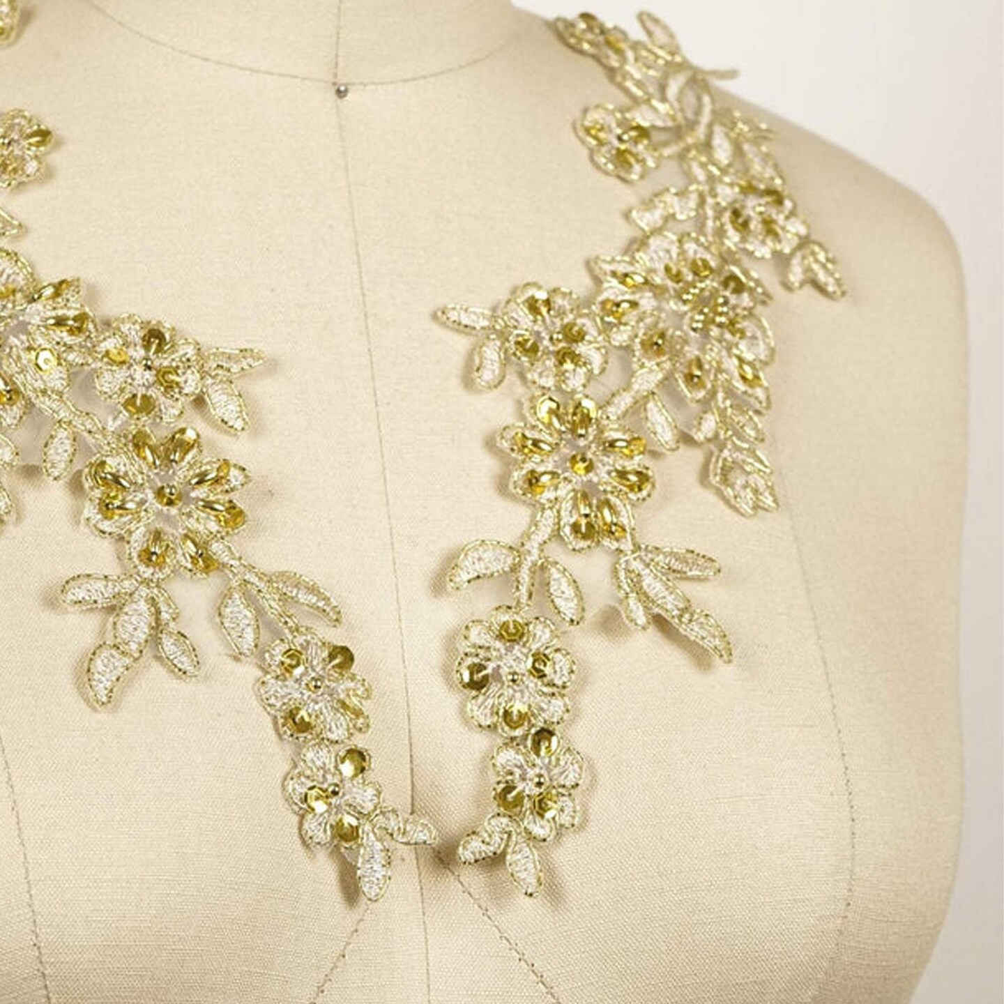 2 Pieces 10" Beaded Sequin Applique Pair for Dance Costumes and Dresses Gold Color