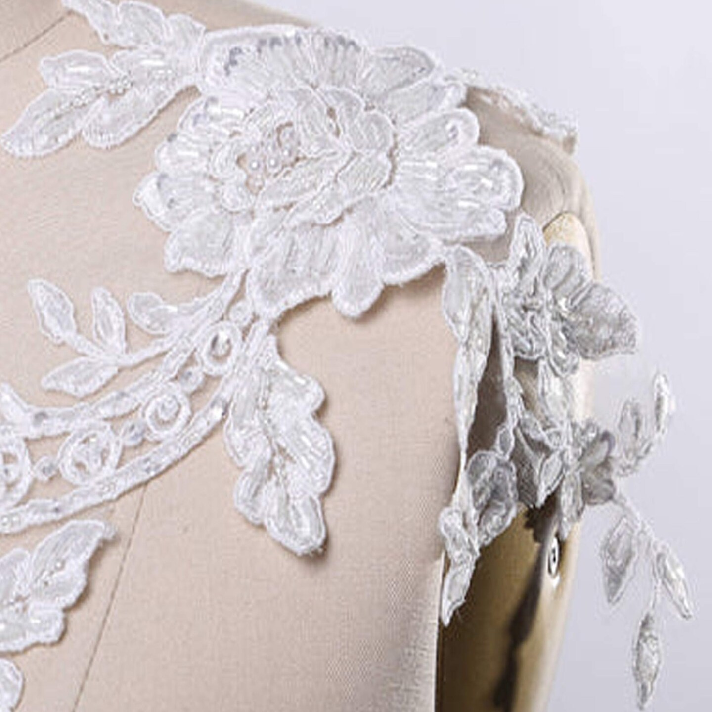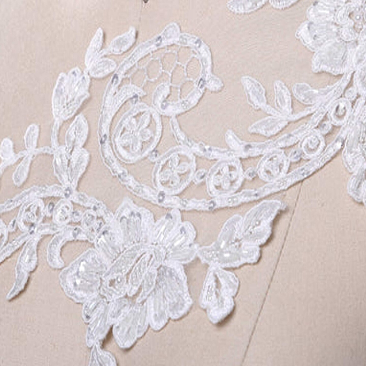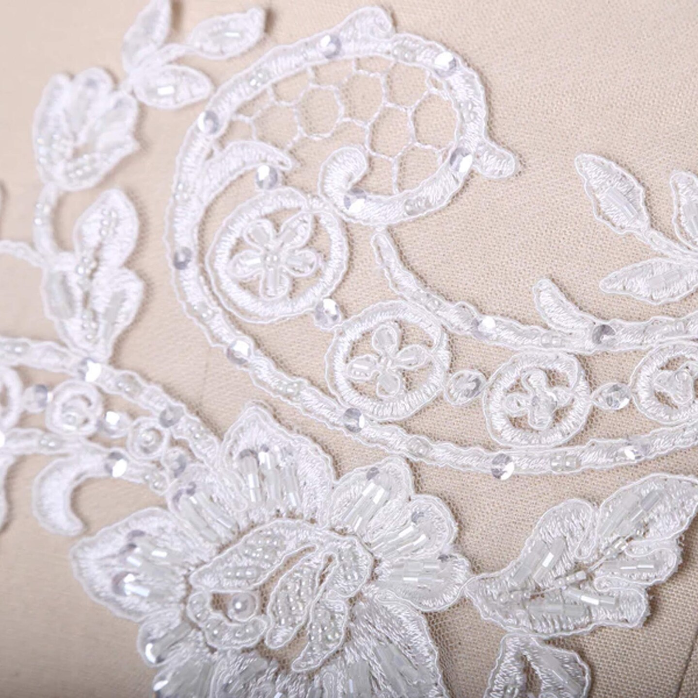 2 Pieces 21" Length White Beaded Lace Applique Pair Extra Long Floral Design