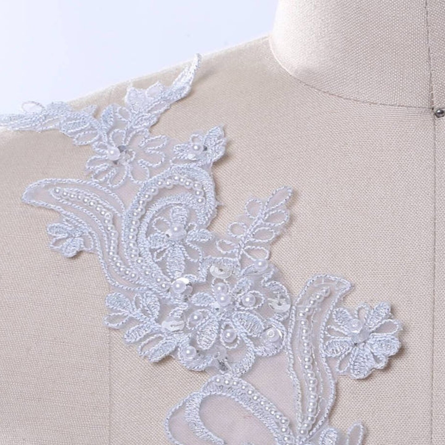 2 Pieces 22 Cm By 9 Cm Shimmery Silver Gray Lace Applique Set With Pearl And Sequin Details