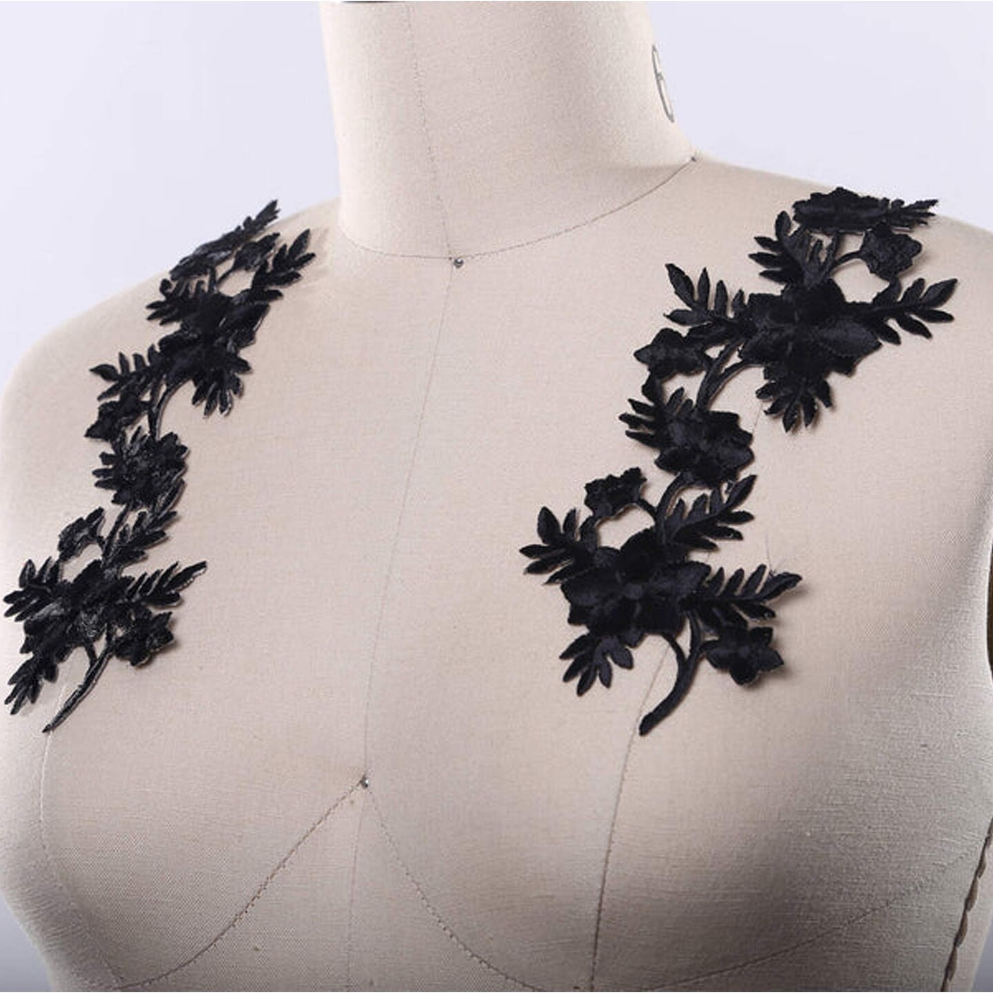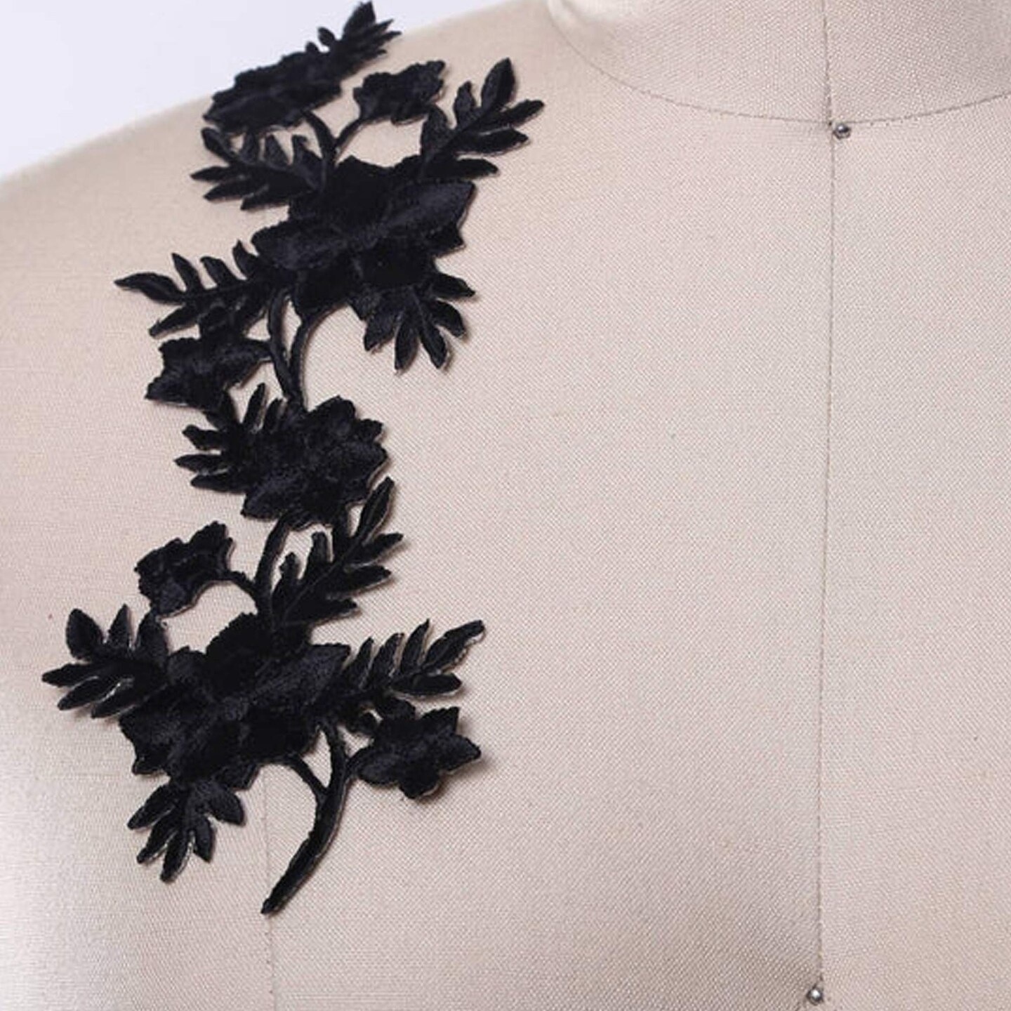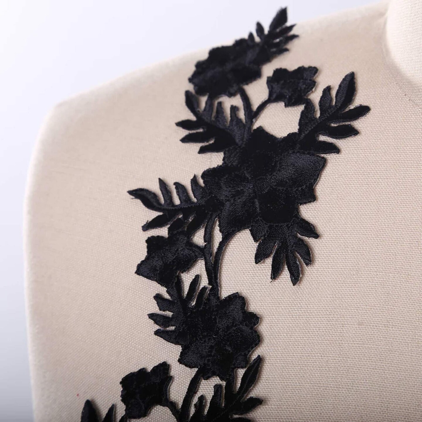 2 Pieces Black Floral Embroidery Patches Elegant Iron On Flower Appliqué for Clothing & Crafts