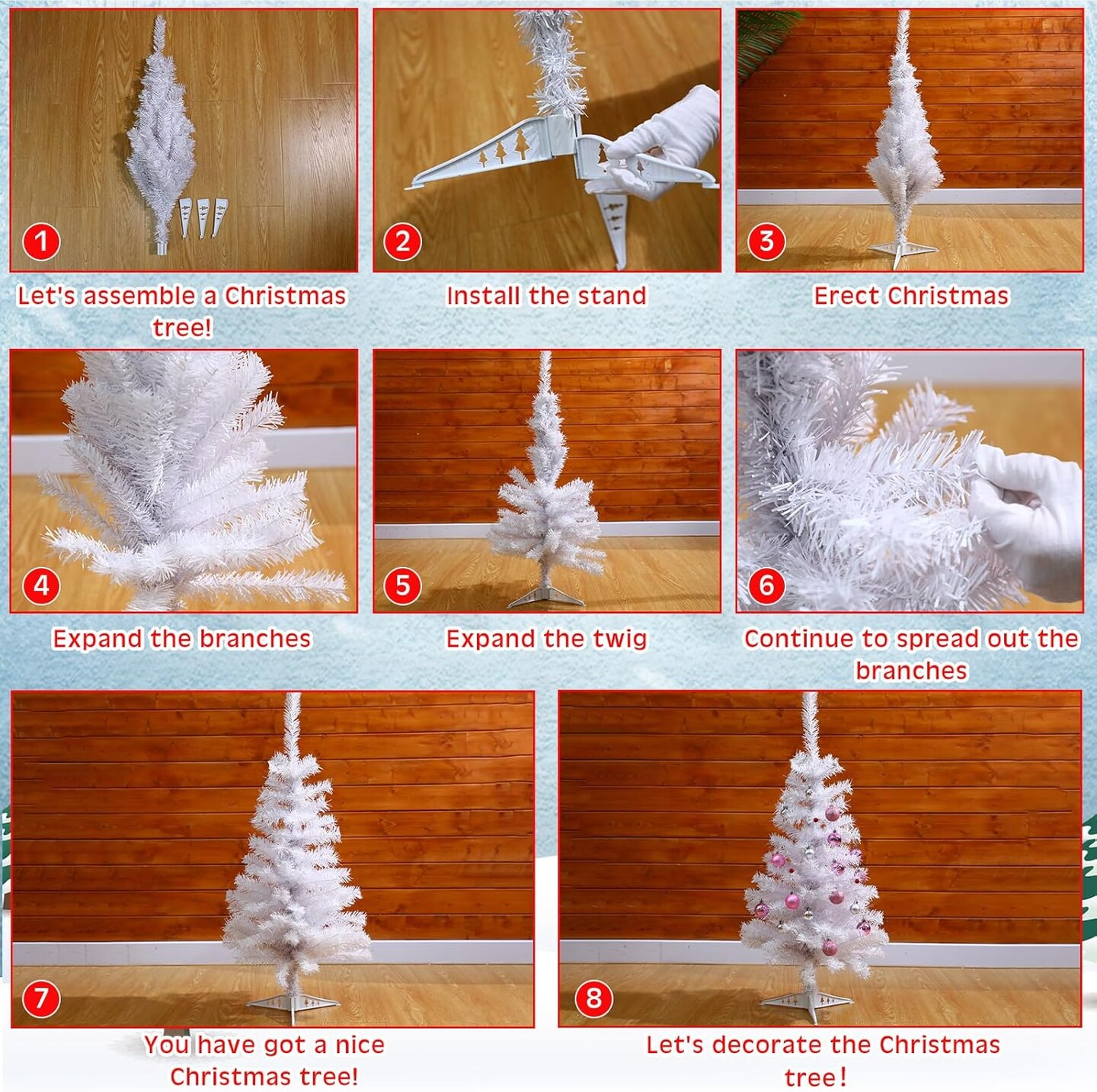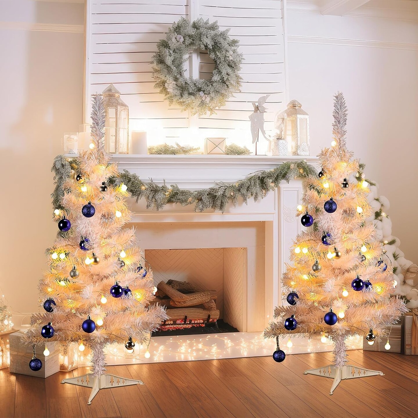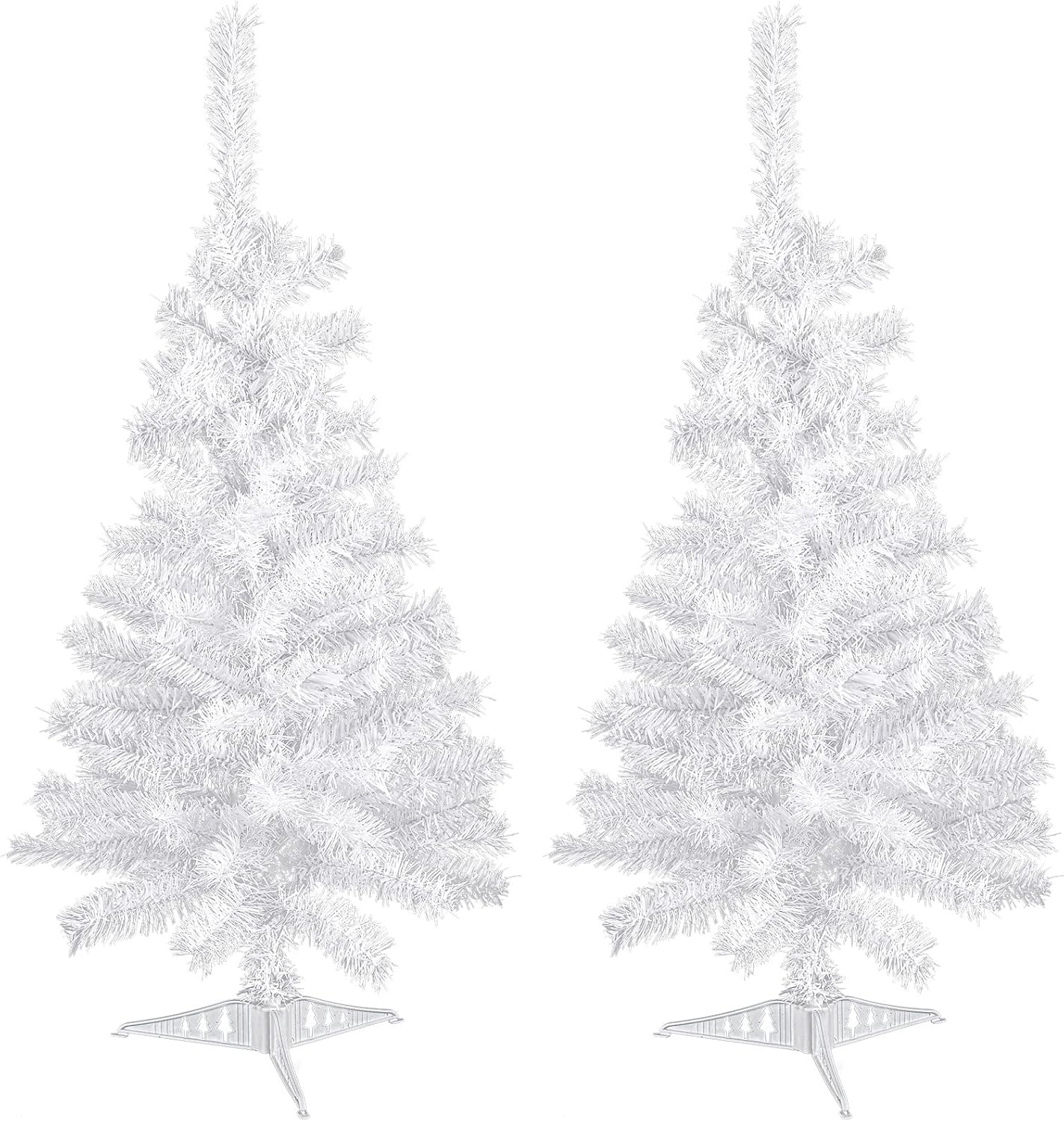 2 Pieces Christmas White Tree with Stand Weather Resistant PVC Artificial Christmas Tree Easy Assemble Fake Xmas Tree