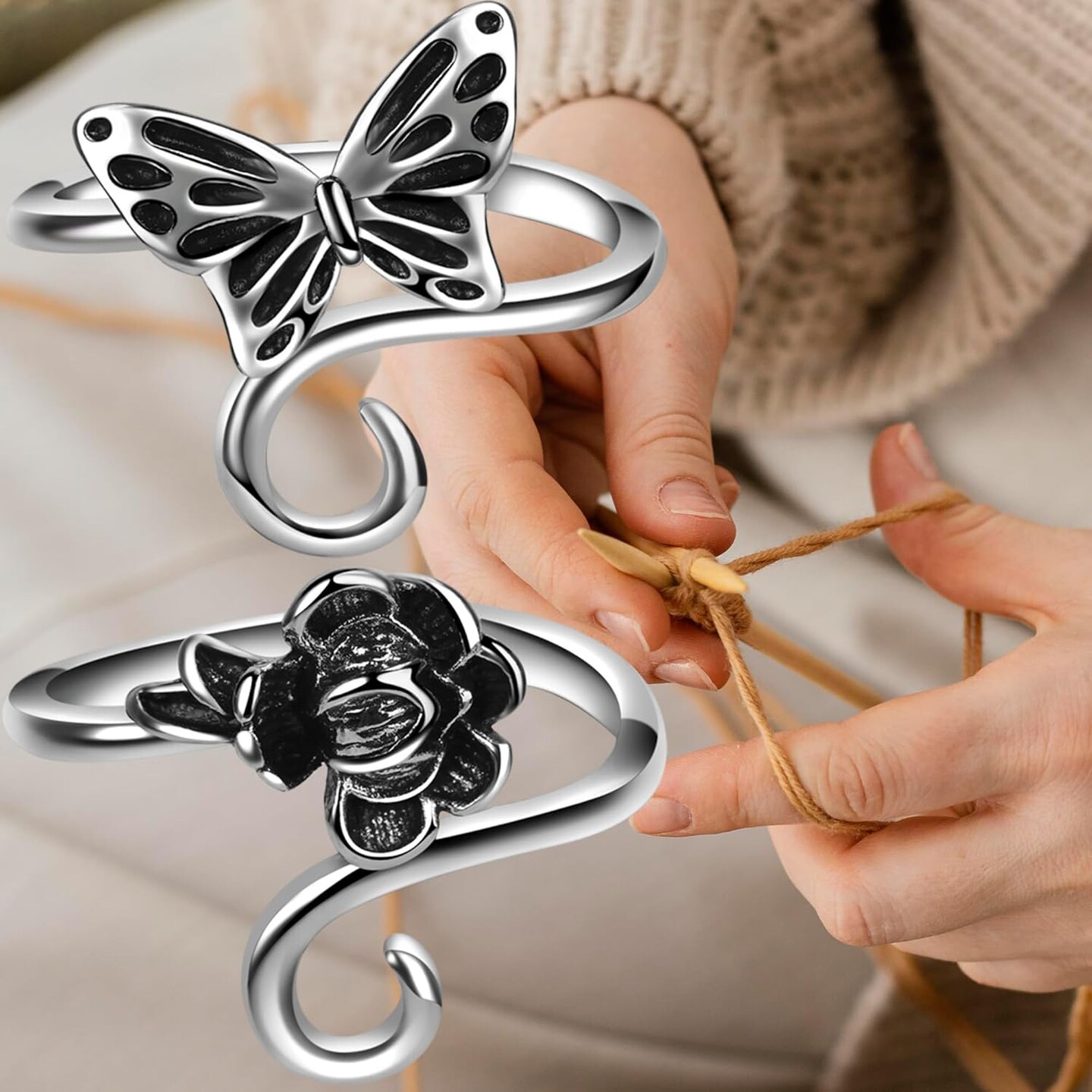 2 Pieces Crochet Rings for Crocheting Cute Yarn Guide