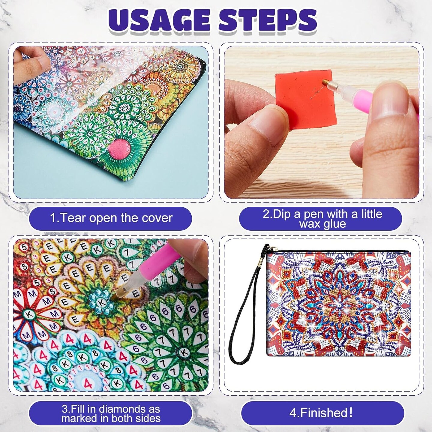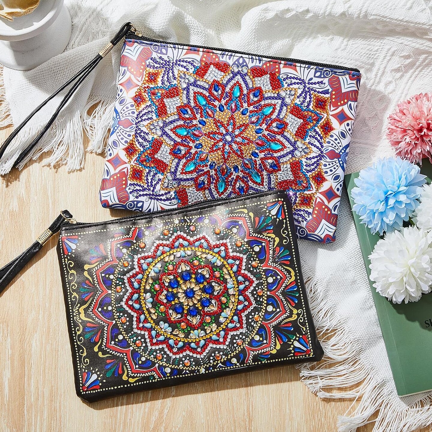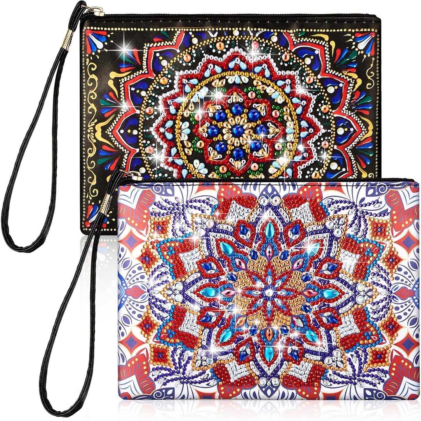 2 Pieces DIY Diamond Painting Purses 5D DIY Diamond Painting Handbag Diamond Art Wristlet Clutch Bag for Women Girls Art Craft Makeup Gift (Mandala)
