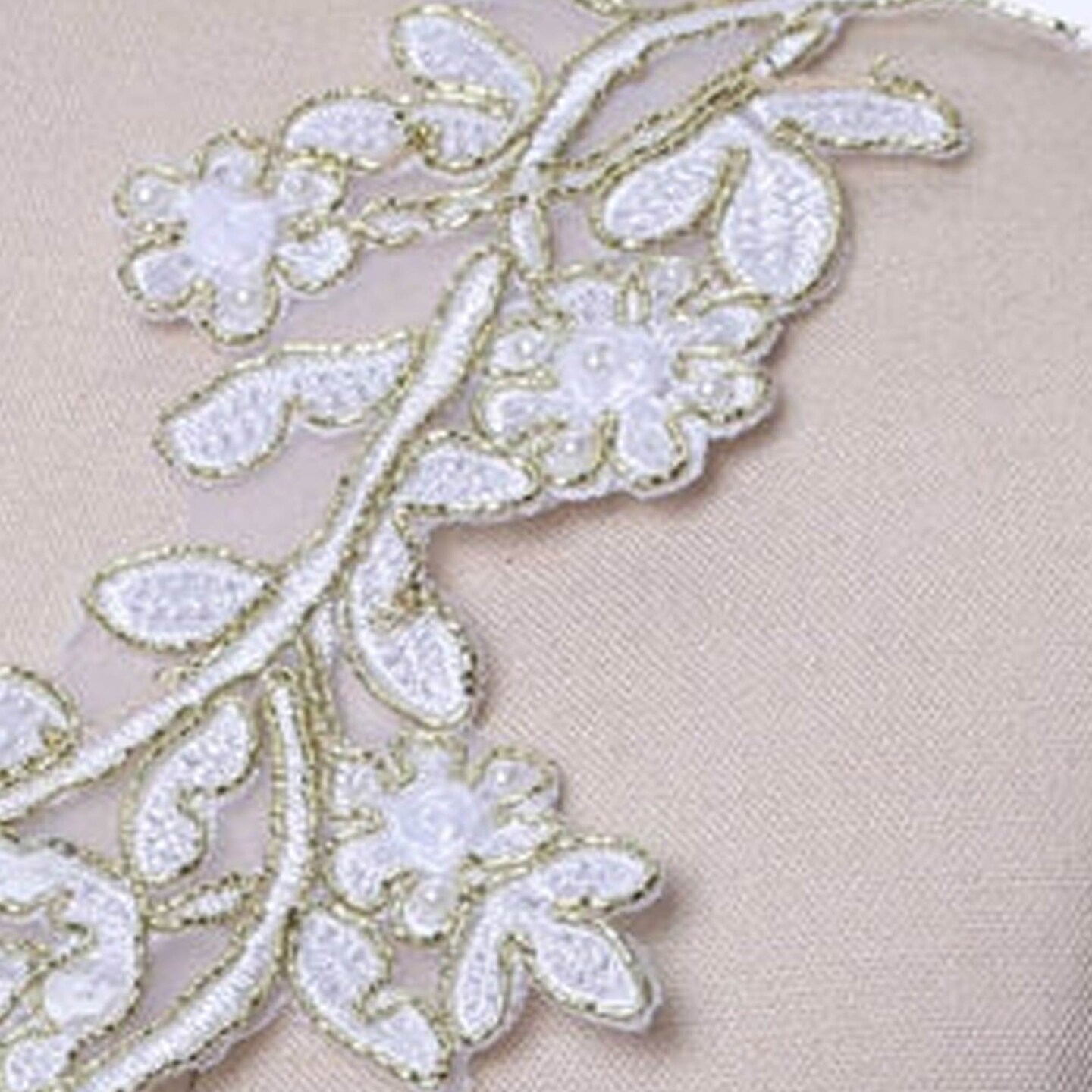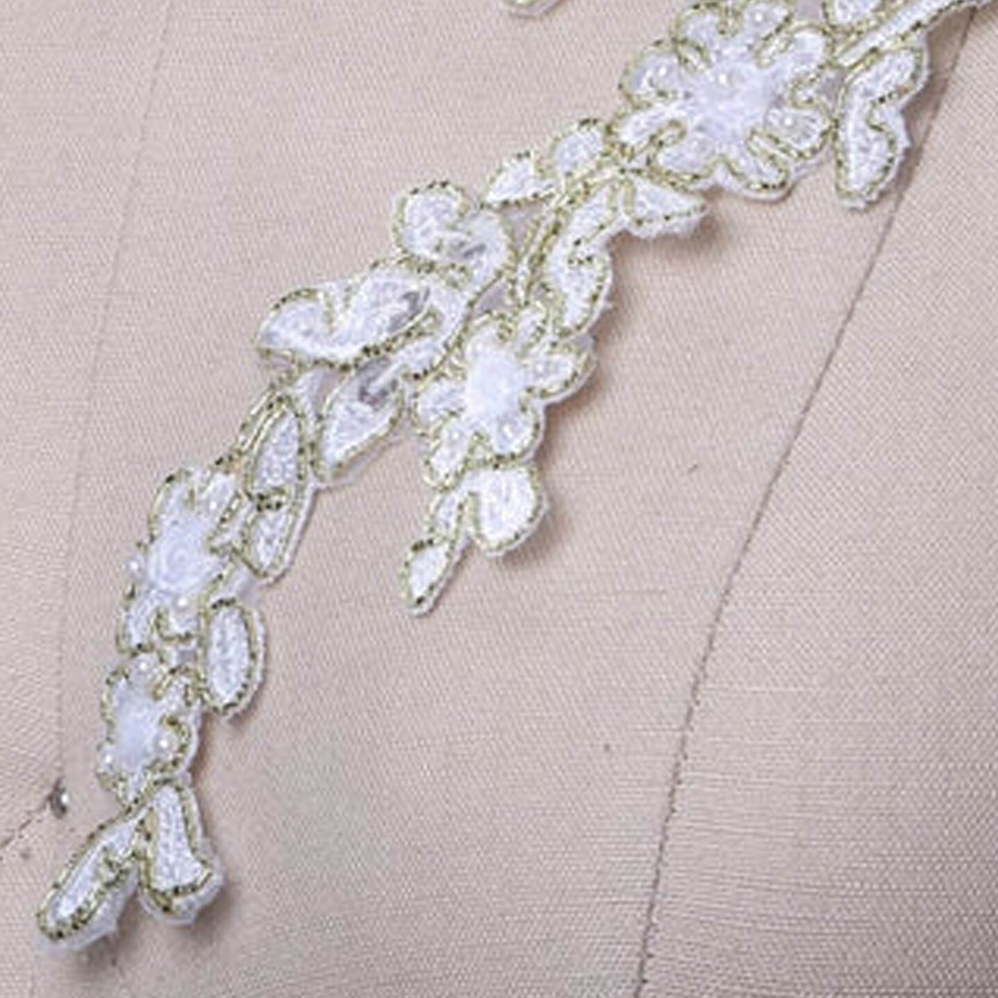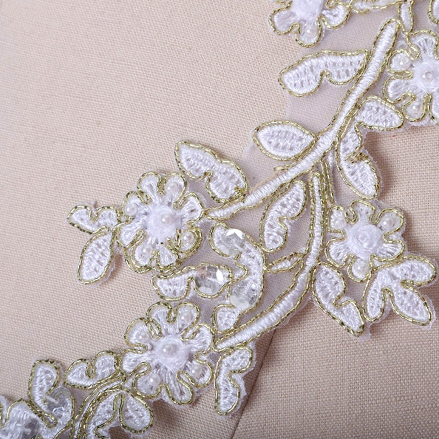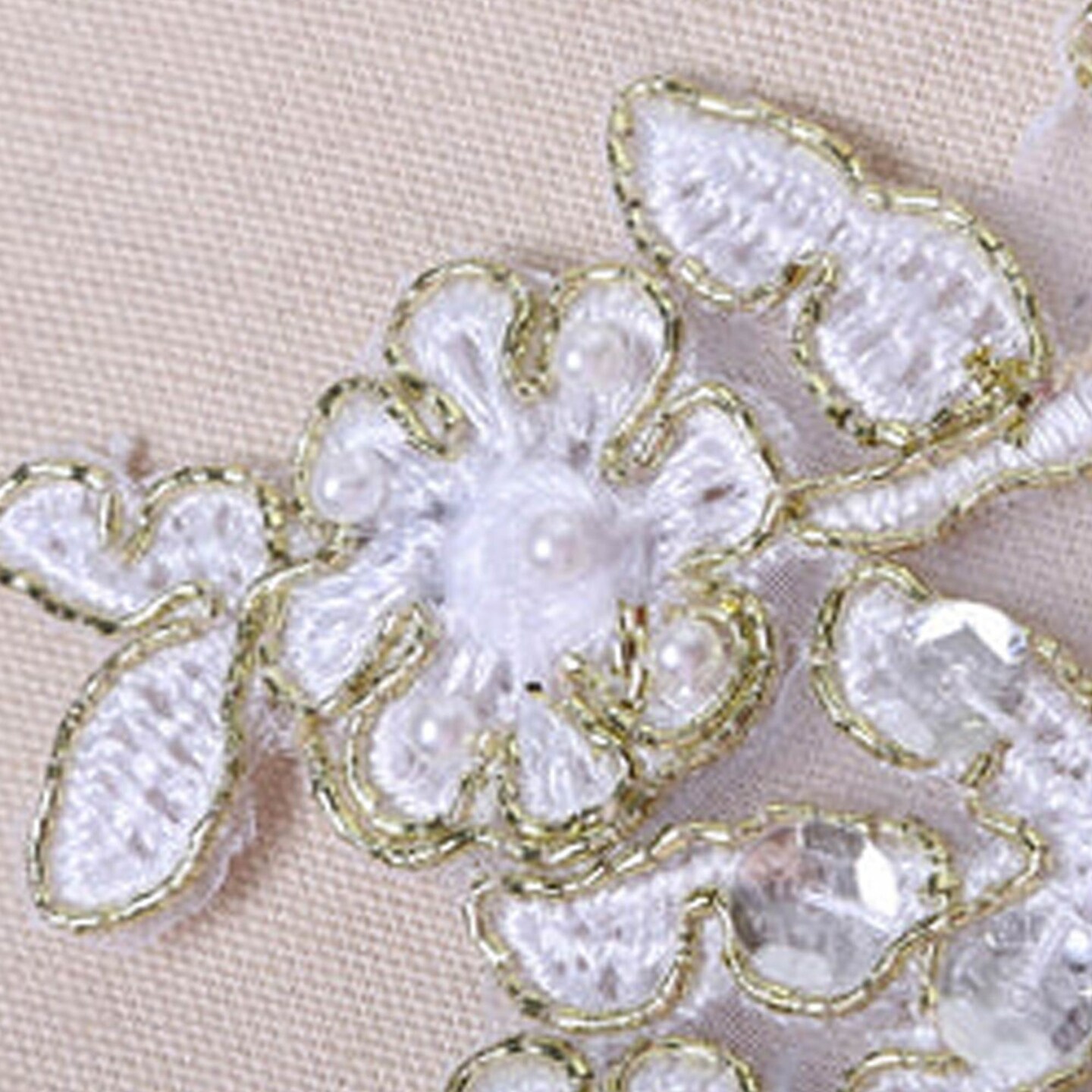 2 Pieces Gold and White Beaded Applique Pair Alencon Lace Sequined Pearl Detail