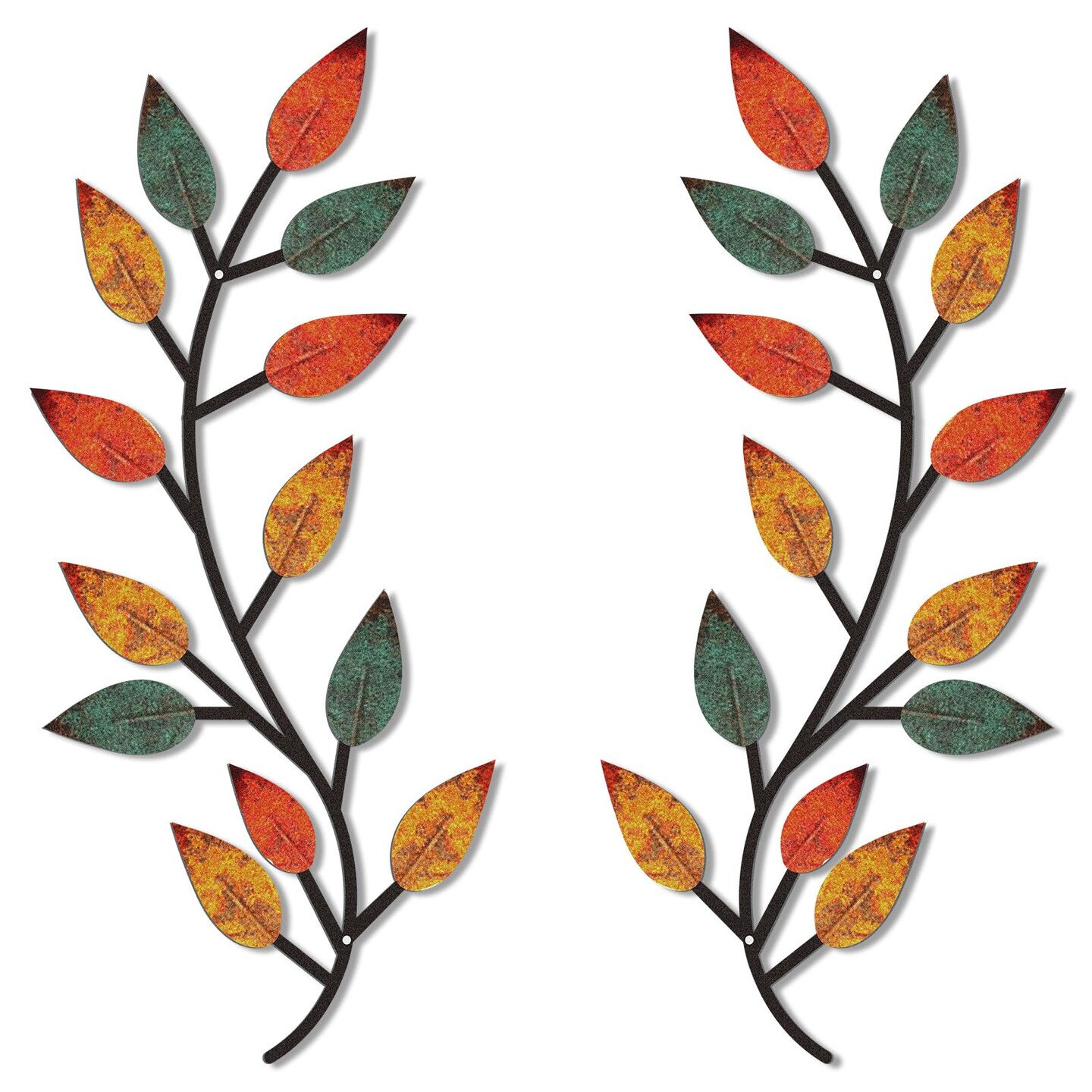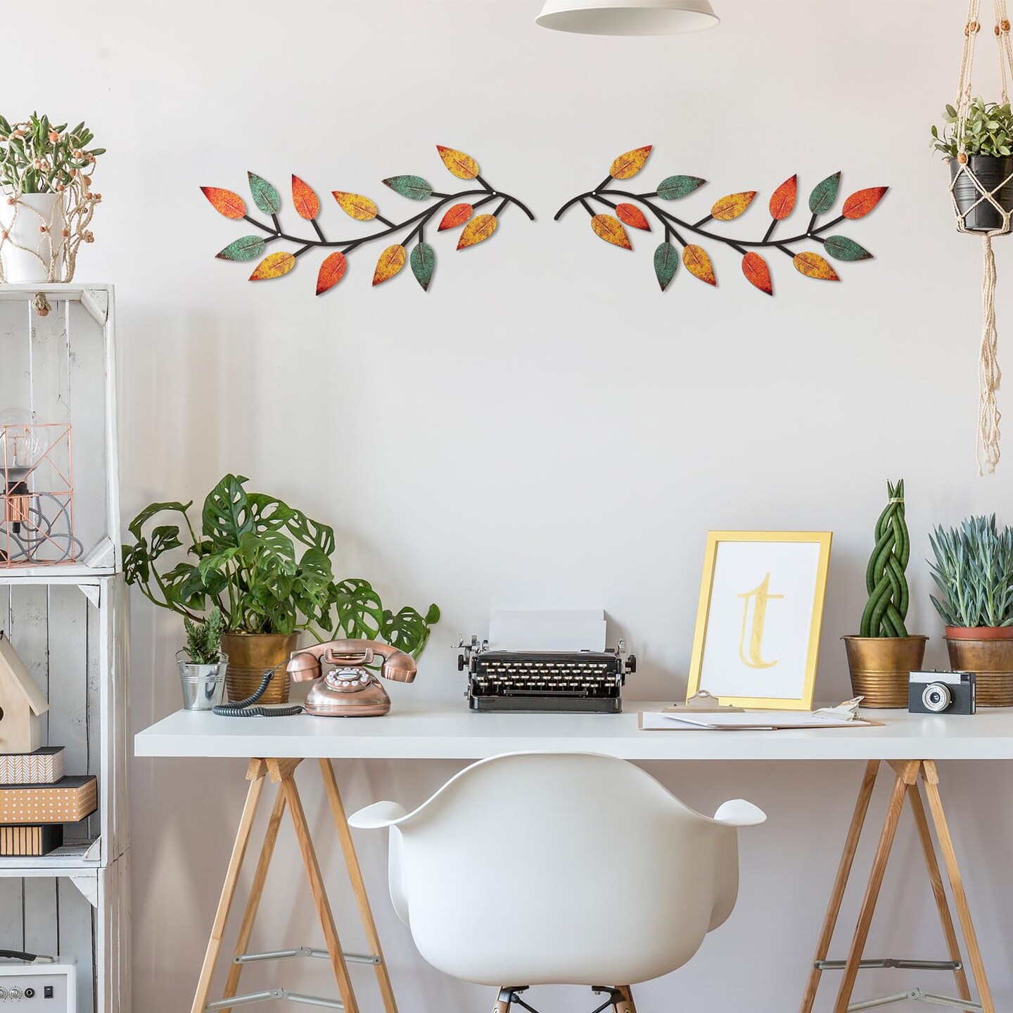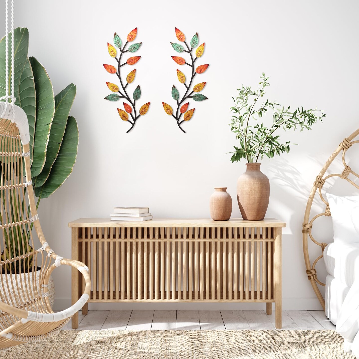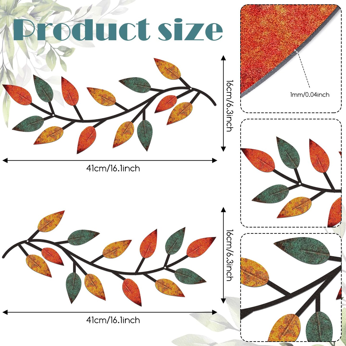 2 Pieces Metal Tree Leaf Wall Decor Vine Olive Branch Leaf Wall Art Living Room, Hallway Wall Decor Outdoor Decoration(Lively Colors)