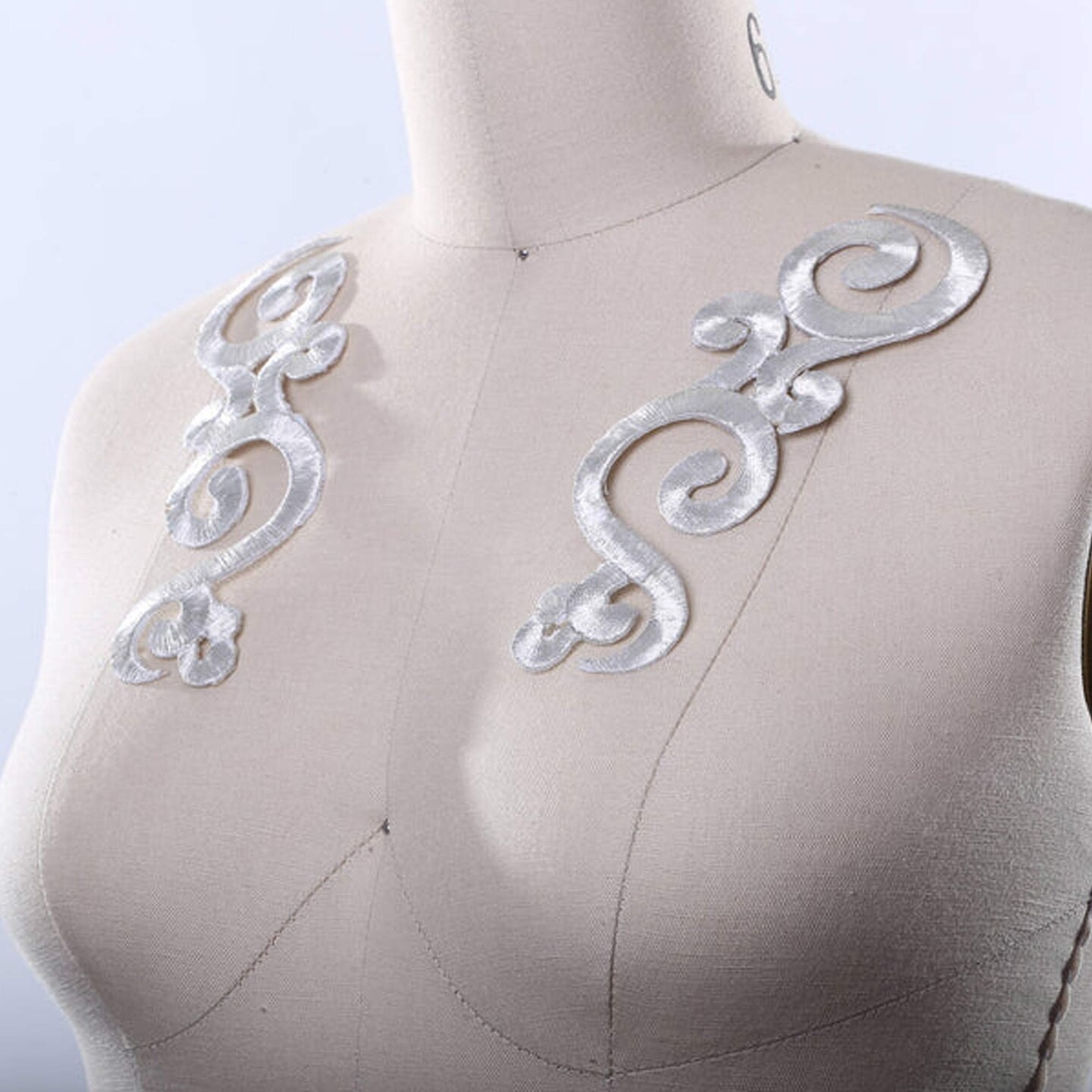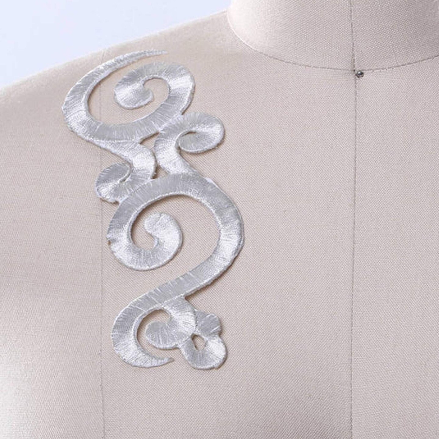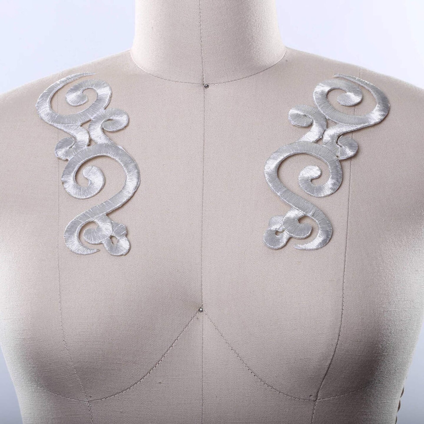 2 Pieces Metallic Silver Applique Embroidered Iron-On Patches for Neckline, Dancewear & Costume Design