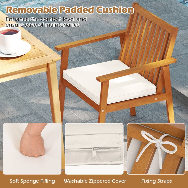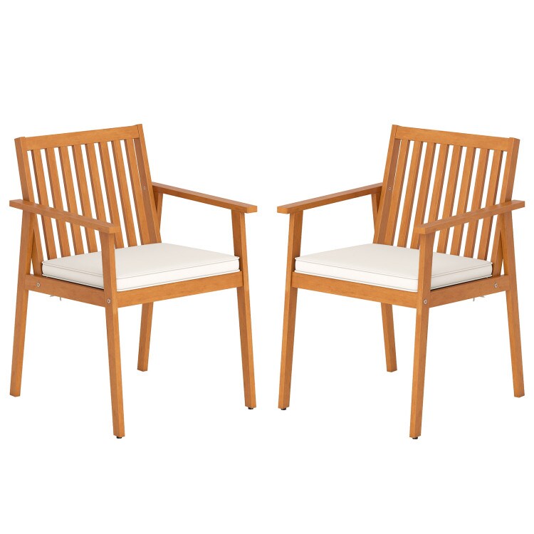 2 Pieces Outdoor Acacia Wood Armchairs with Comfortable Removable Cushions and Slatted Back