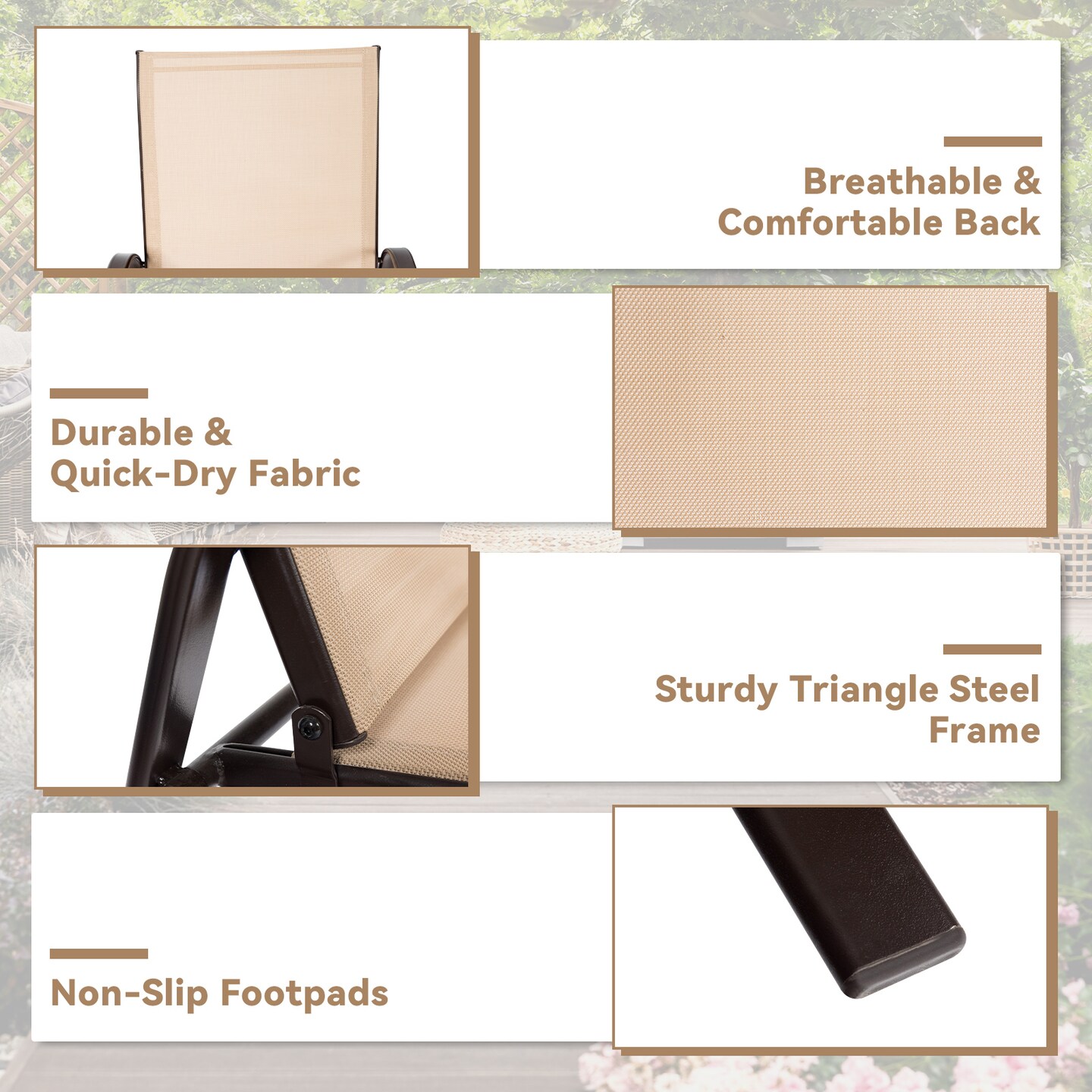 2 Pieces Patio Outdoor Dining Chairs with Powder Coated Steel Frame