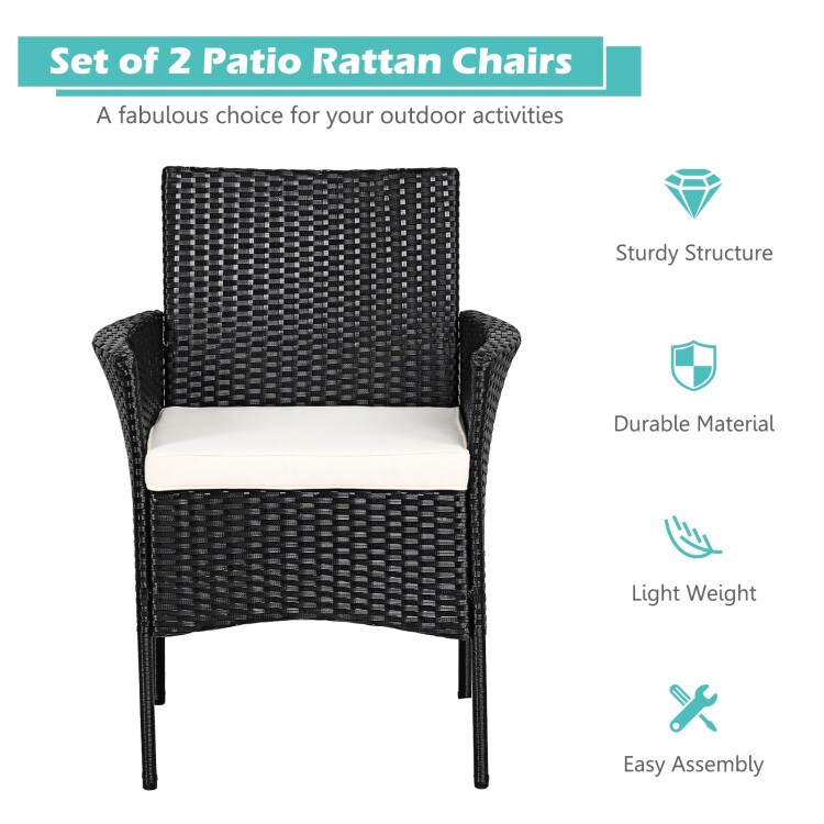 2 Pieces Patio Wicker Chairs with Cozy Seat Cushions