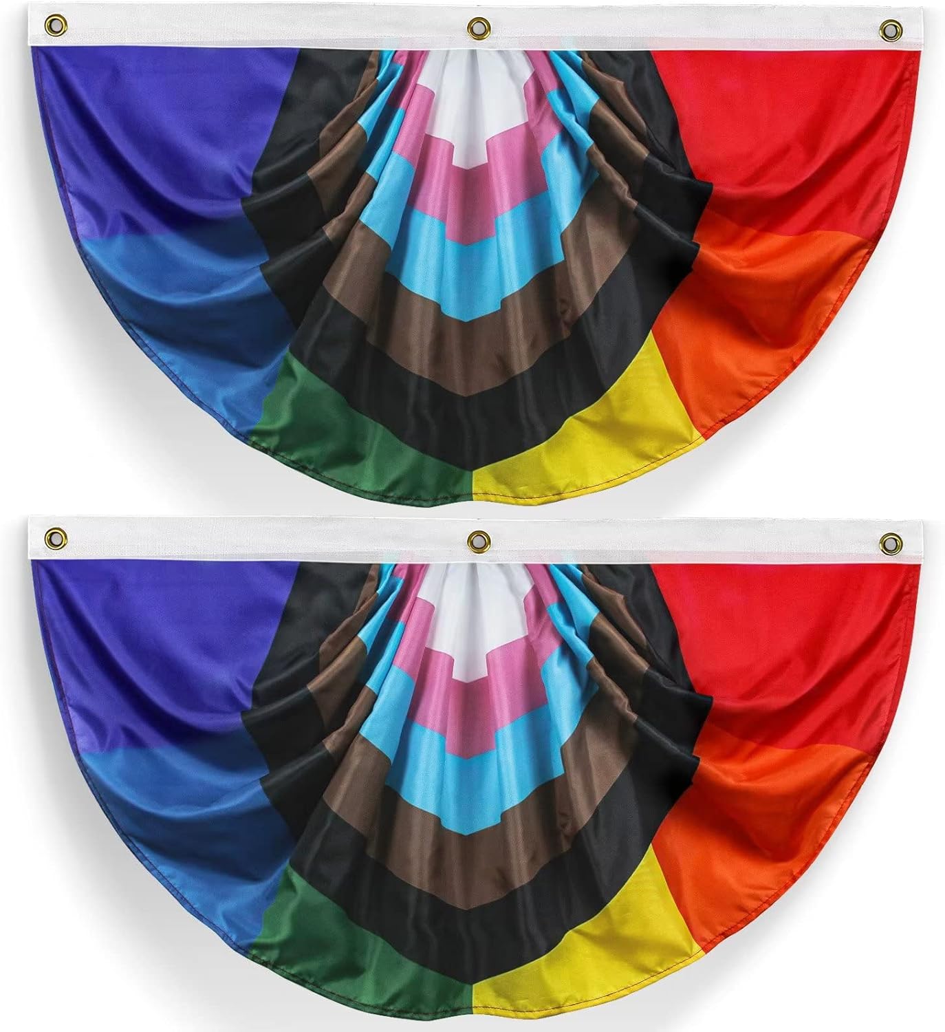 2 Pieces Progress Pride Pleated Fan Flag Rainbow Bunting 1.5x3 Ft Gay Decorations Party Supplies LGBTQ Proud Wall Decor Hanging Backdrop for Outdoor Garden Fence Support Indoor Balcony