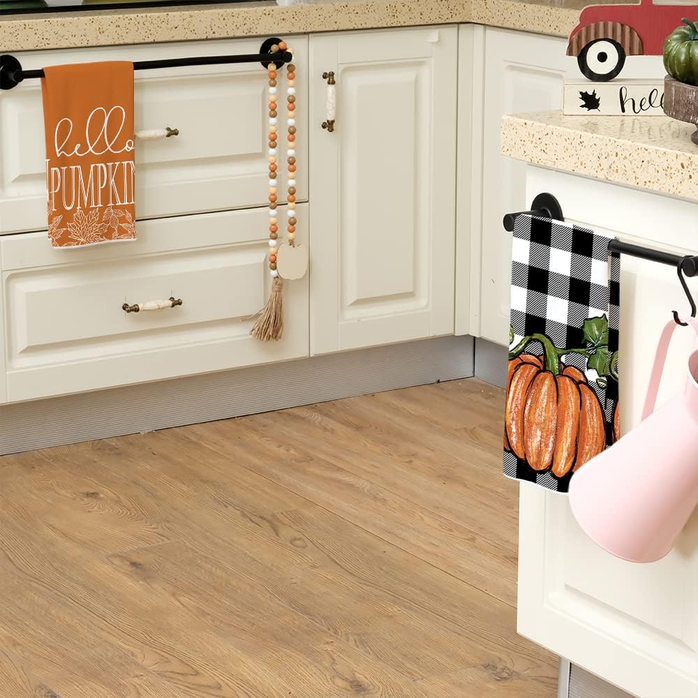 2 Pieces Pumpkin Fall Kitchen Towels ,Maple Leaves Autumn Dish Towels 18x26 Inch,Farmhouse Home Indoor Thanksgiving Harvest Seasonal Vintage Decorations AD002
