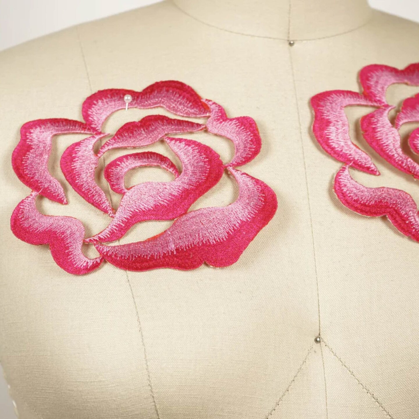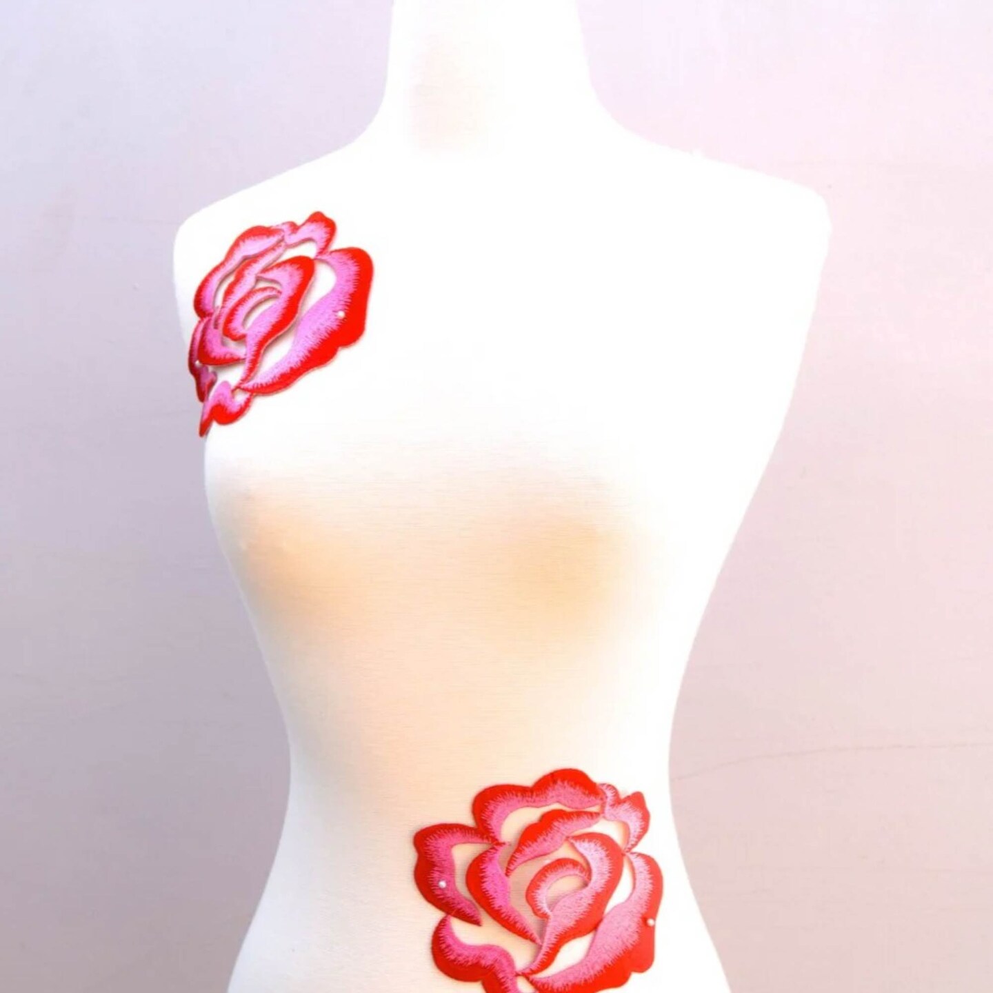 2 Pieces Red and Pink Embroidered Rose Flower Patches 3D Iron On Applique for Jackets and DIY Crafts